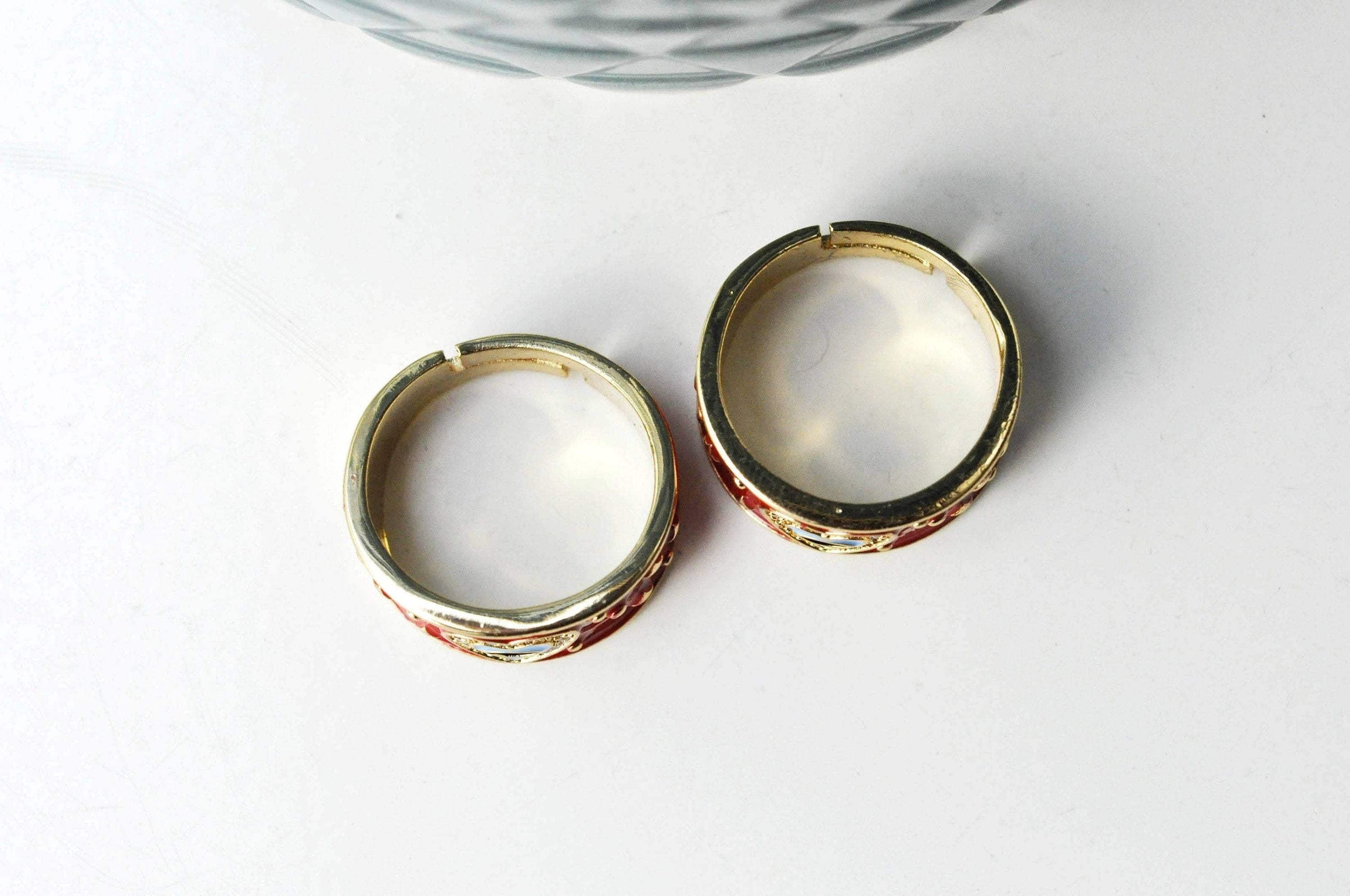EP-Adjustable ring, gold-plated brass, red enamel, eye protector, 18mm, x1 (G4248)