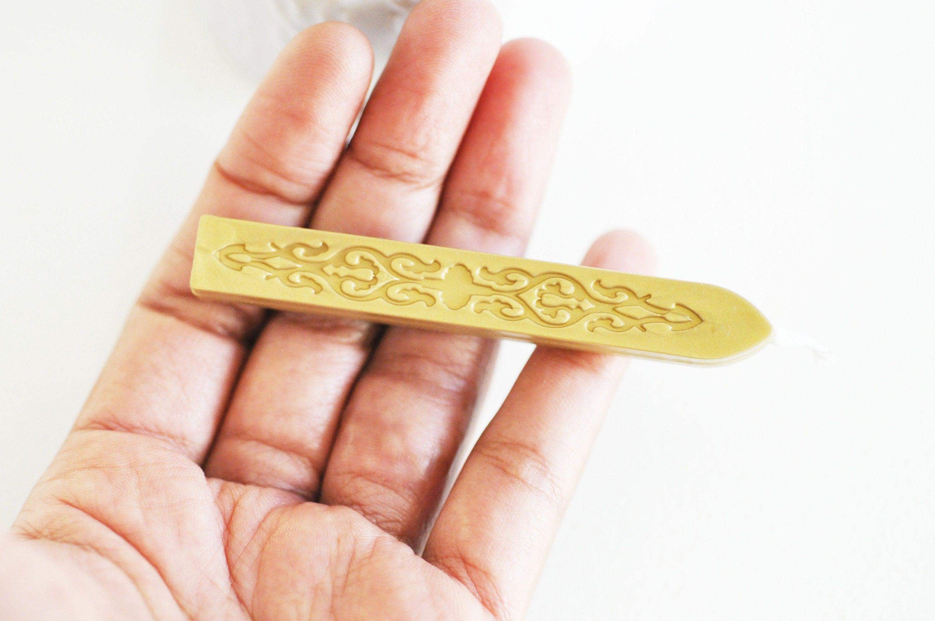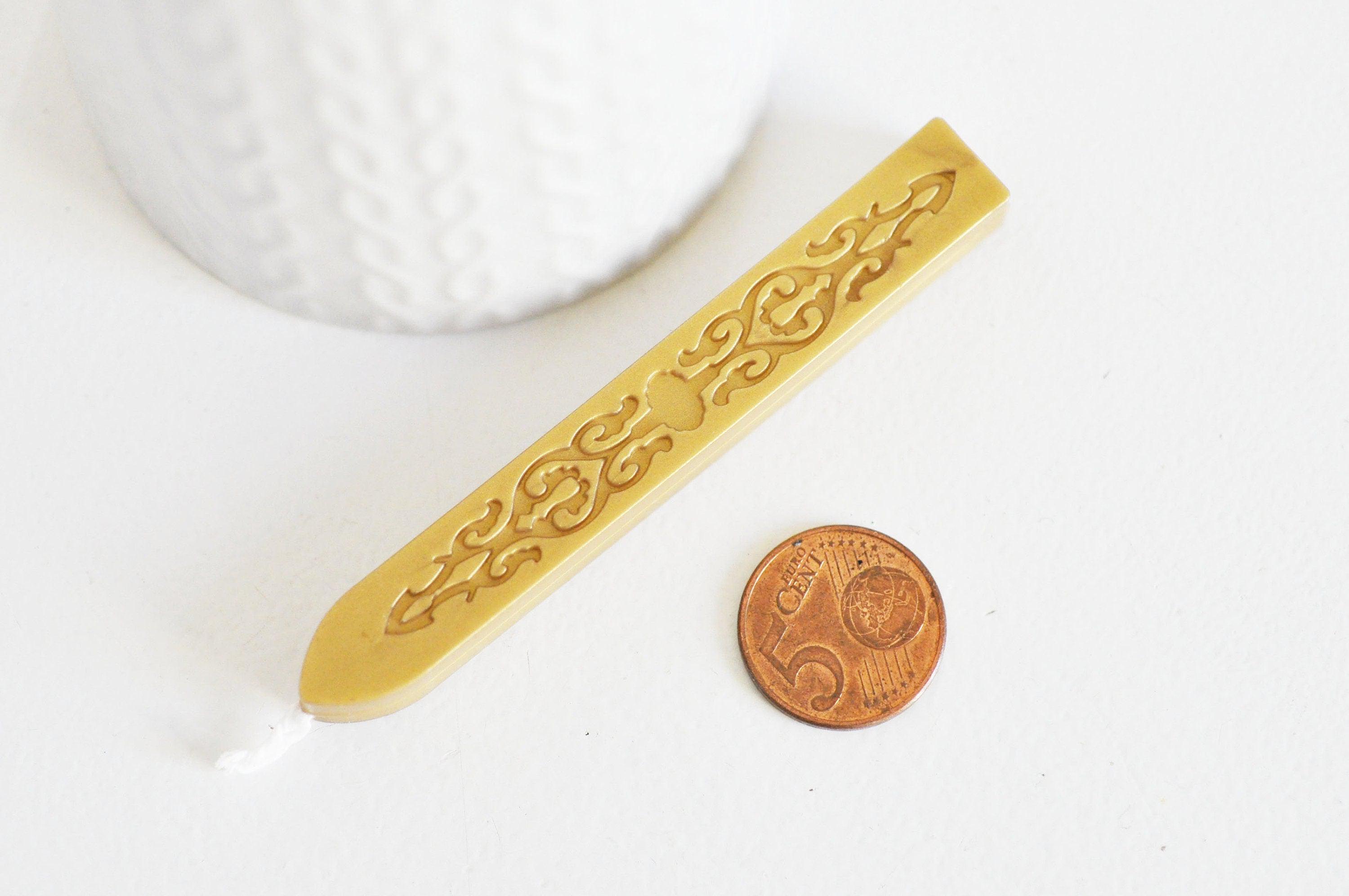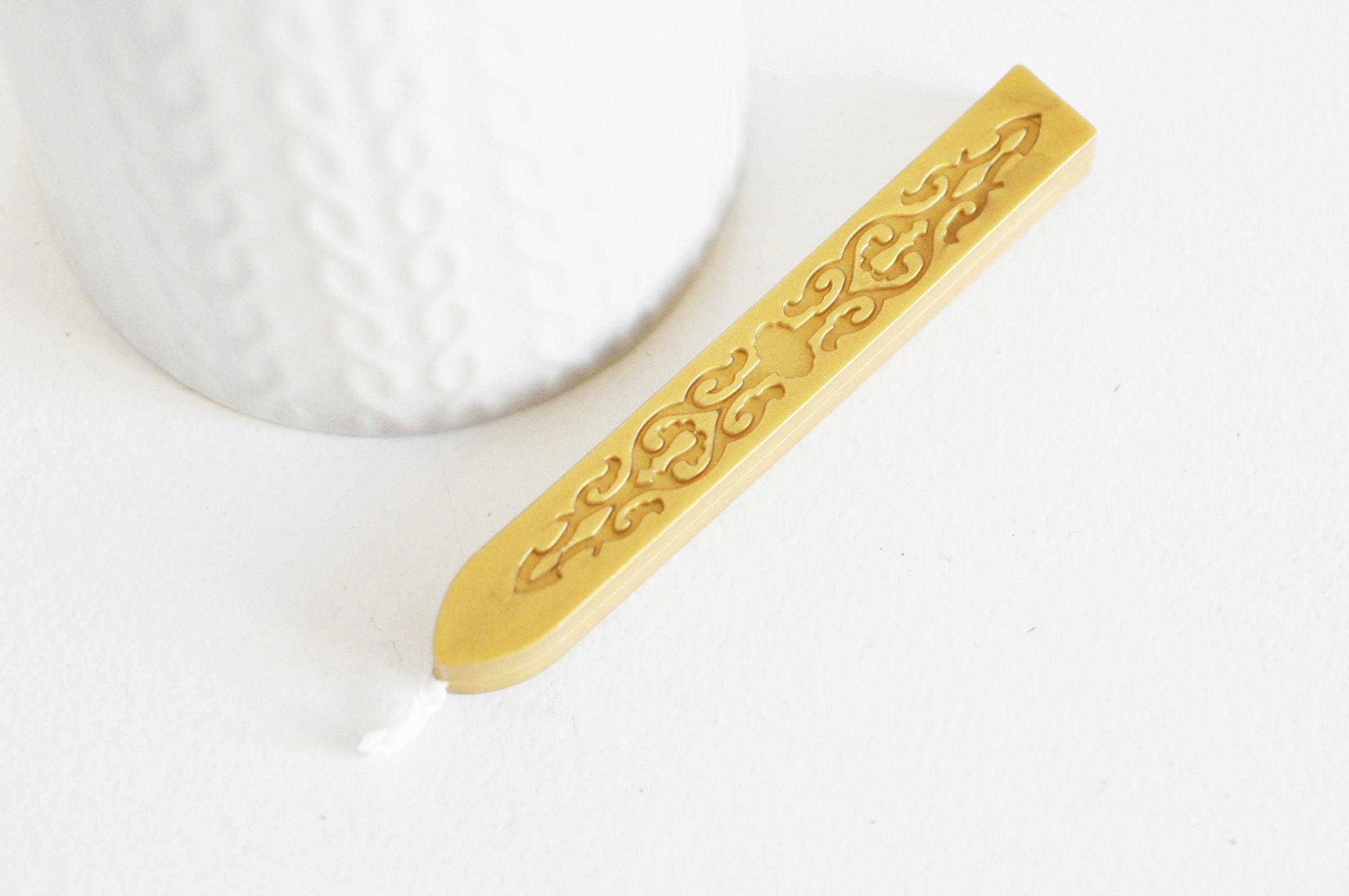 Golden sealing wax stick with wick, a supply for creating personalized seals for your DIY wedding invitations To make your invitations and your own seals, adopt the melting wax technique. The wick will allow you to easily light and melt...