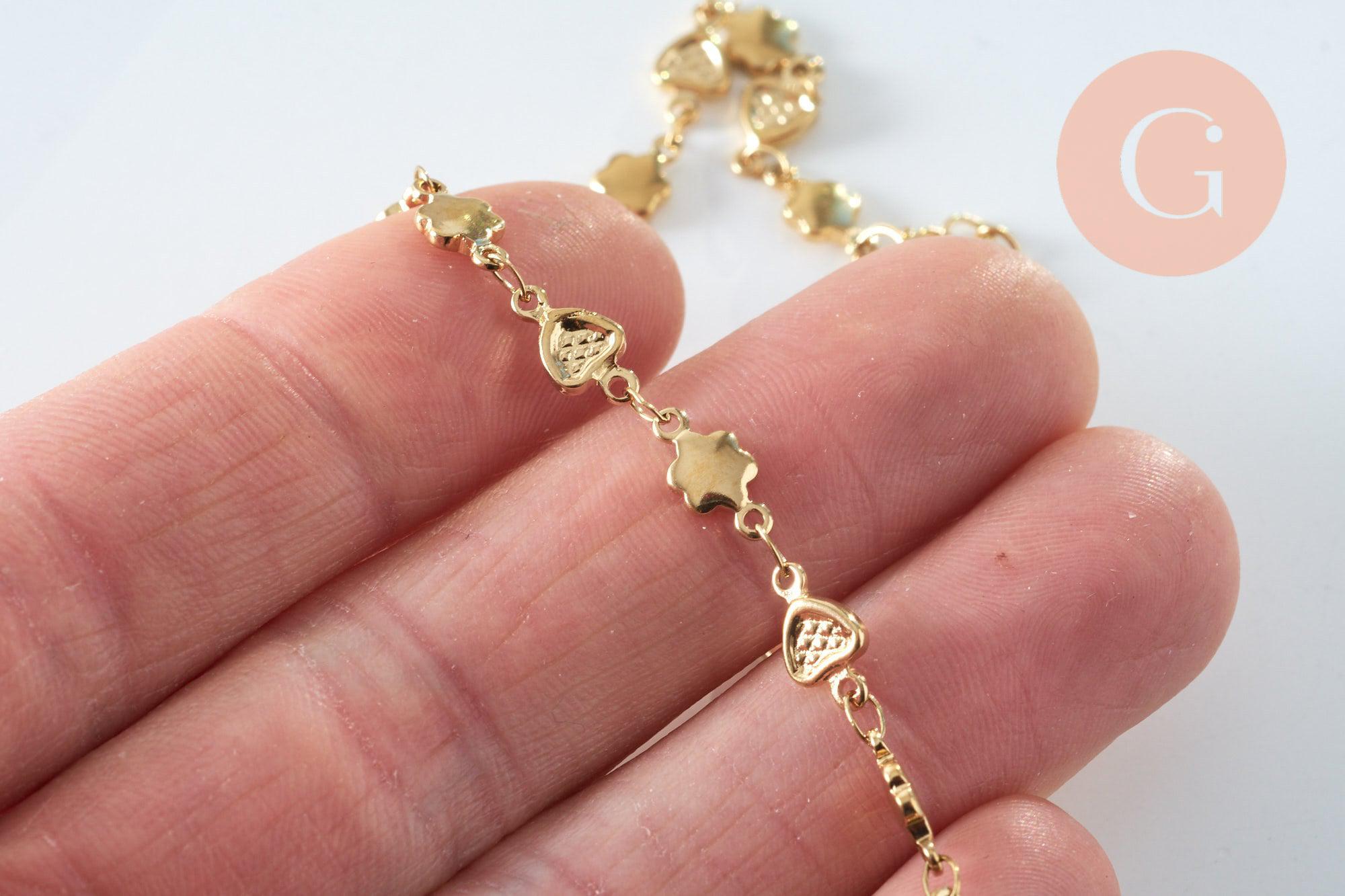 Adopt this bracelet made of flower and heart links in 14k gold-plated steel. It is equipped with an extension chain long enough to adapt to all wrist sizes or even wear it as an ankle chain.