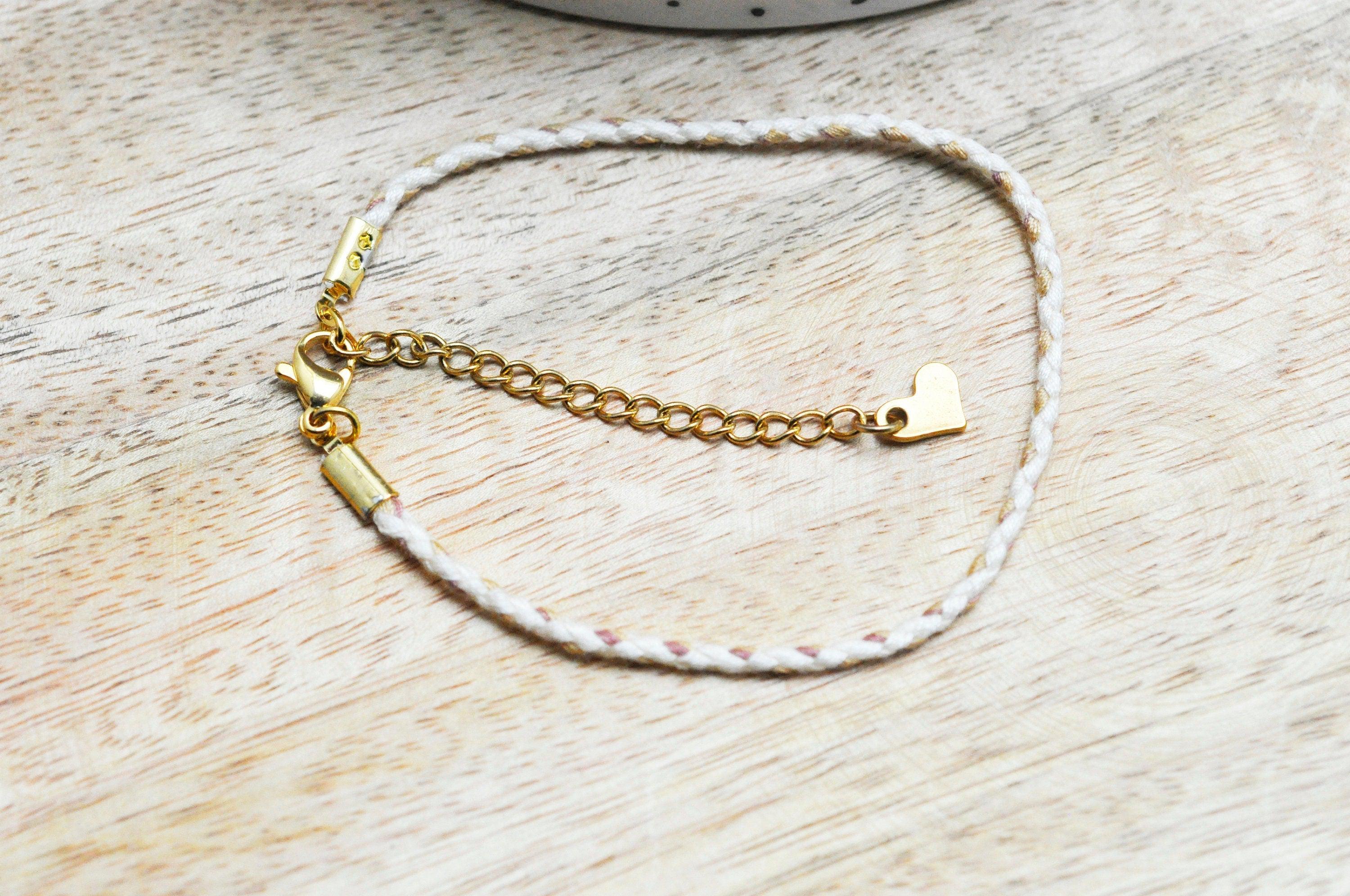 EP - Braided bracelet in white cotton, gold and 14k gold-plated steel, gold bracelet, jewelry creation, nickel-free stainless steel bracelet, 20.5cm, x1 G6744
