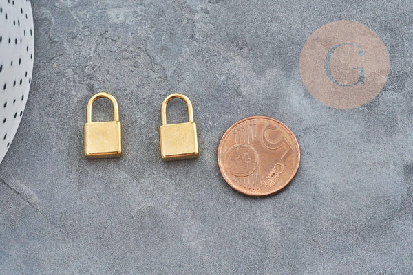 18k gold-plated stainless steel padlock charm, 18mm, love jewelry design, x1 (G2612)