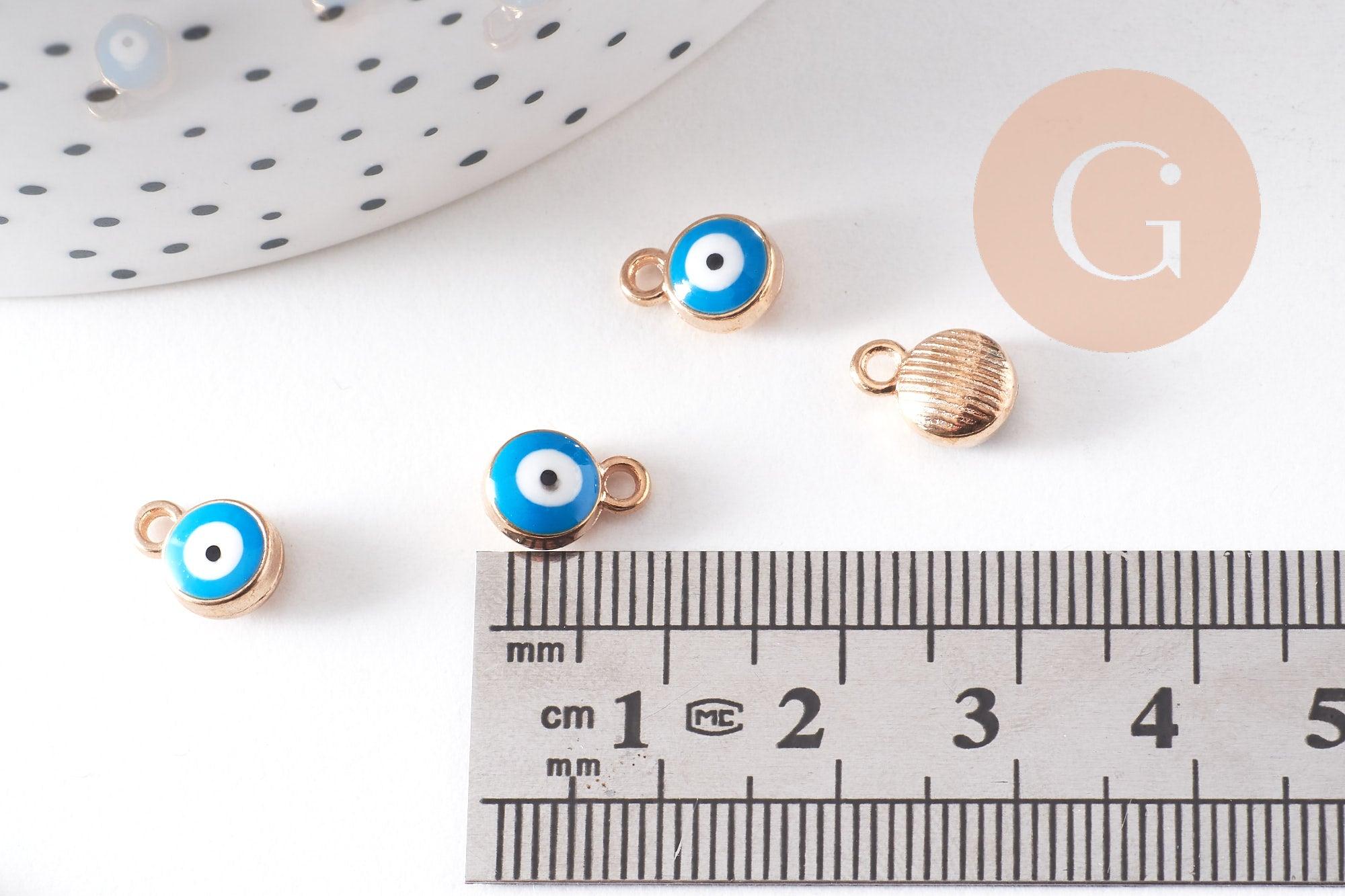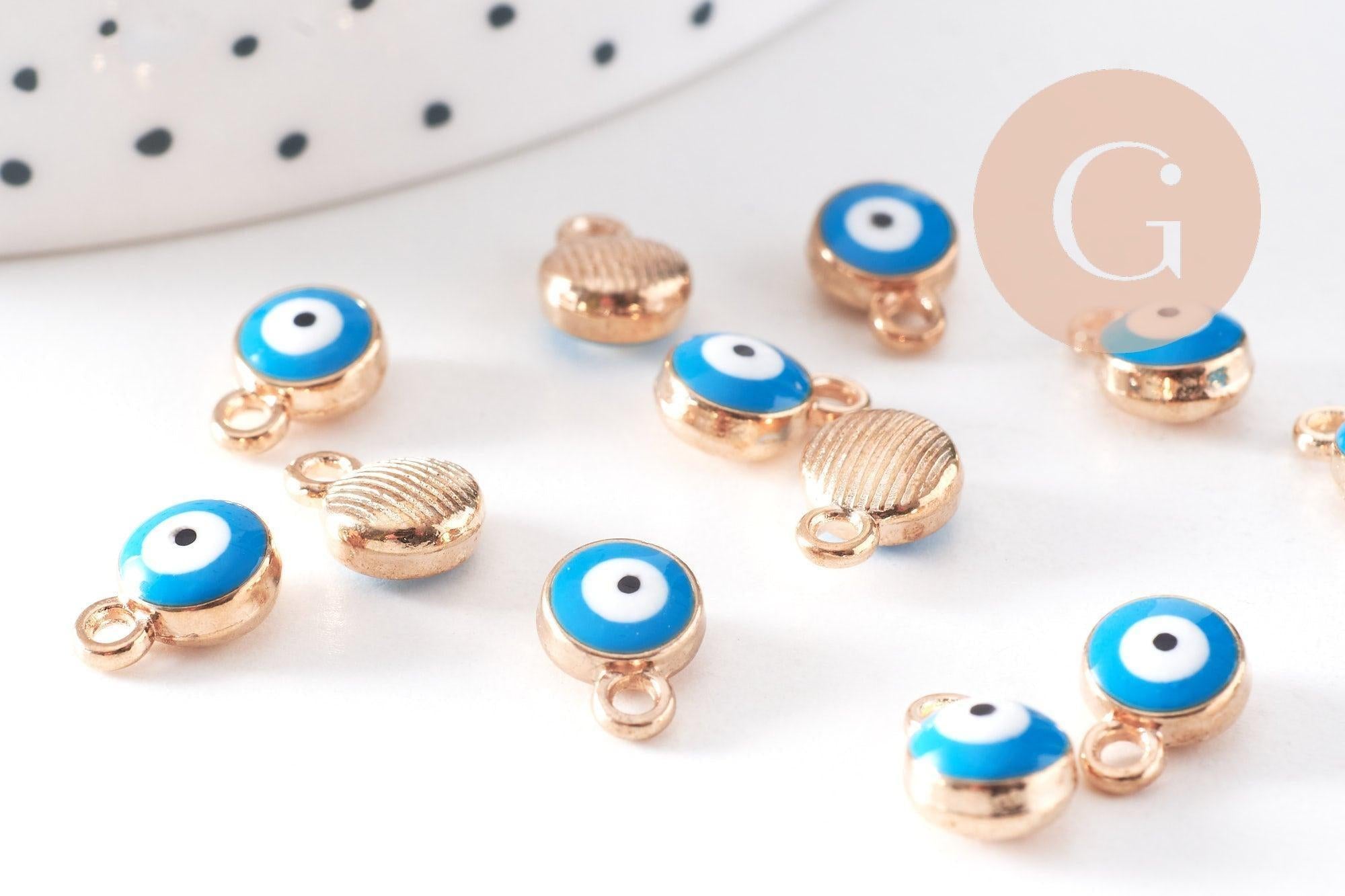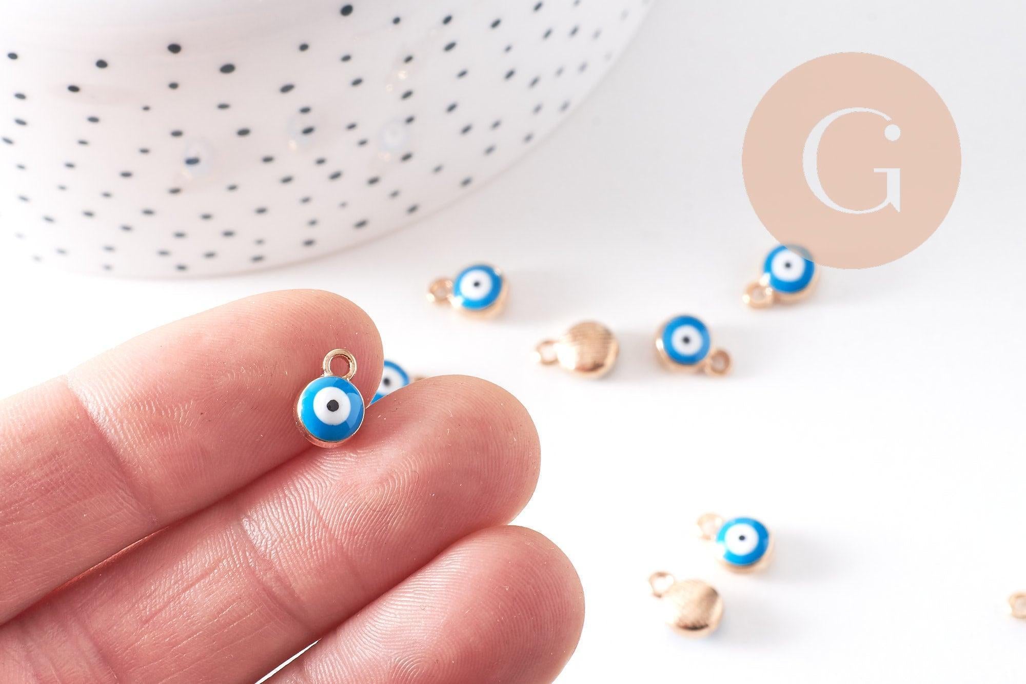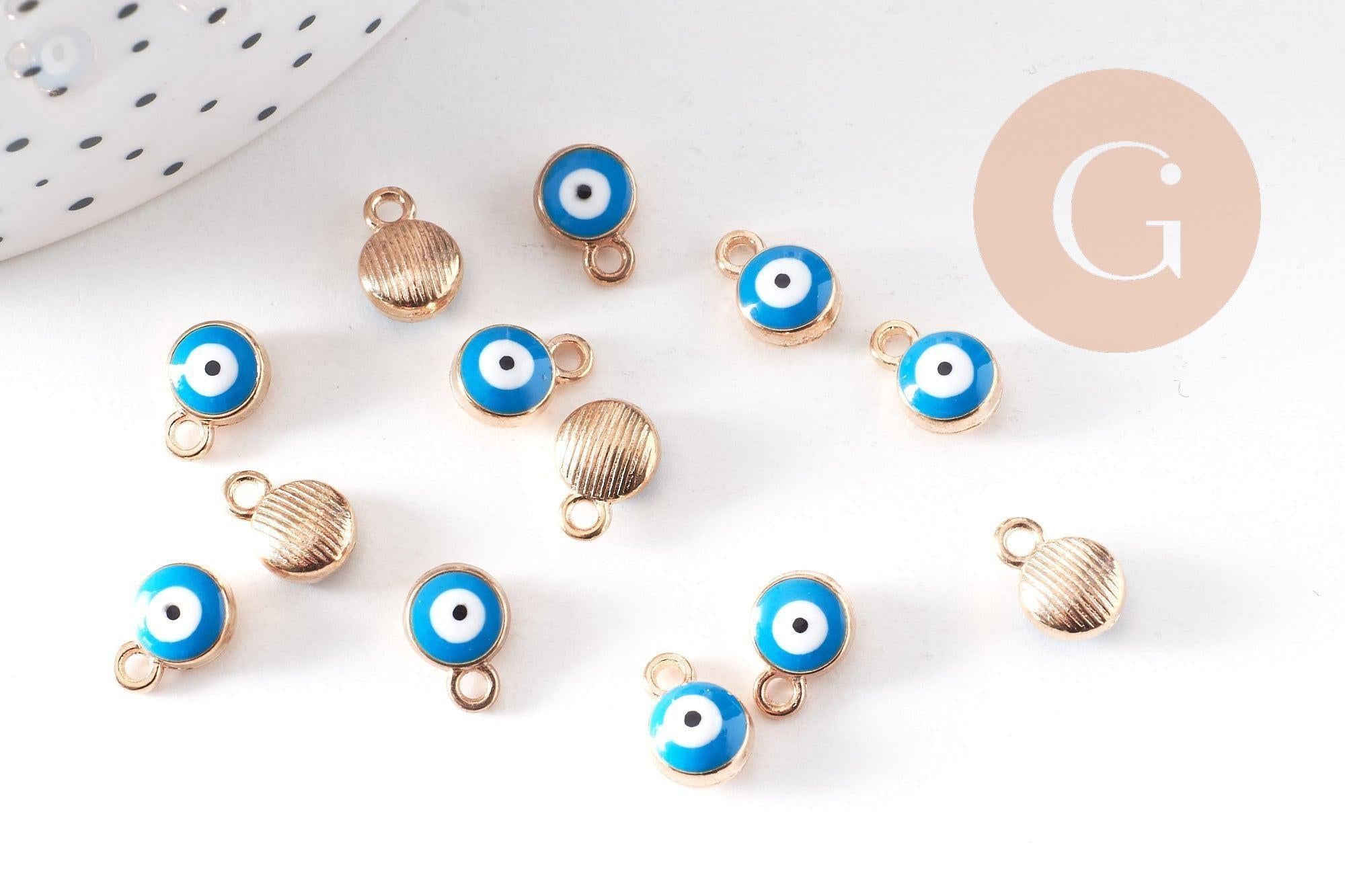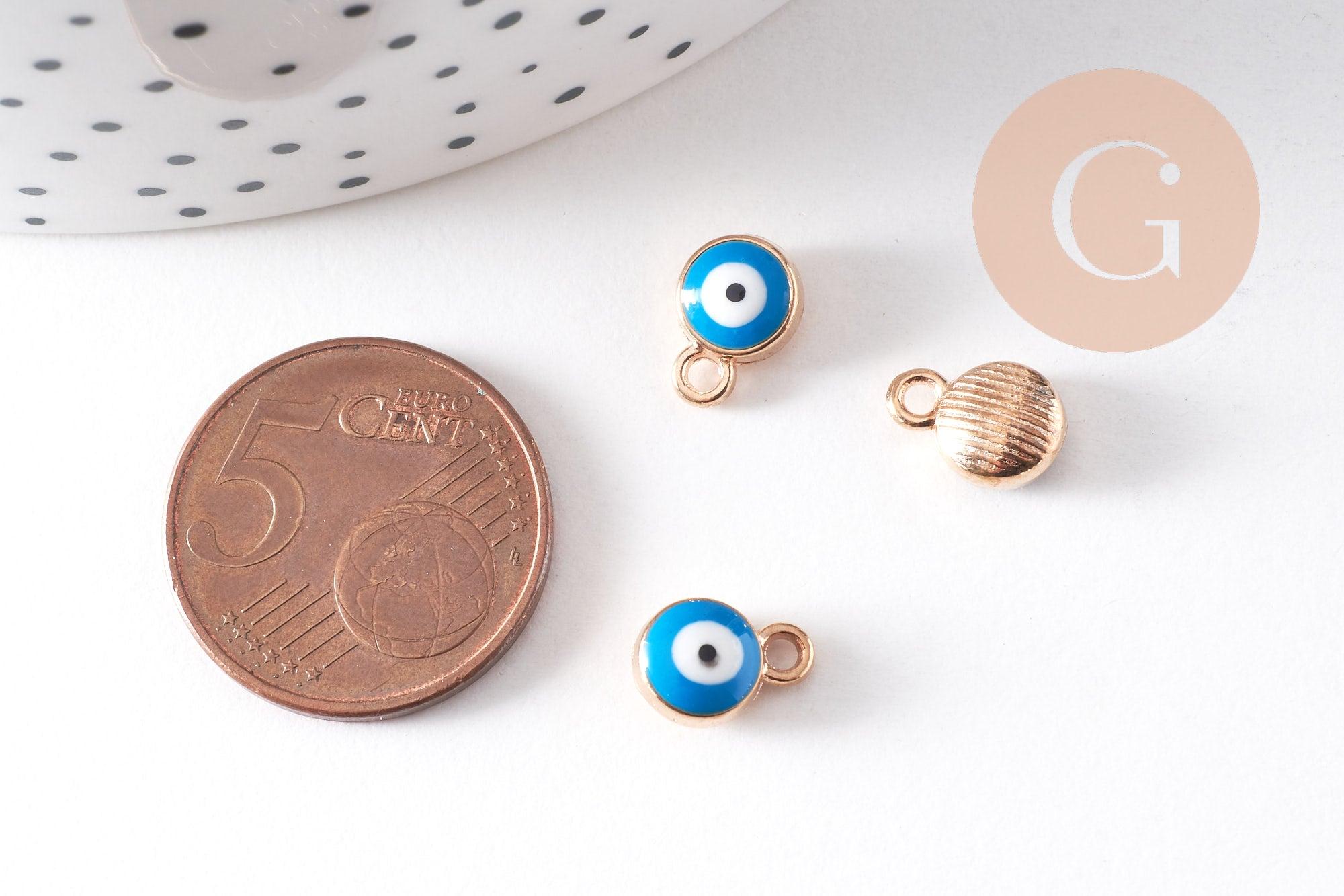 This mini charm representing the evil eye, enameled in turquoise and blue, with a clip on the top is ideal for making your DIY costume jewelry .