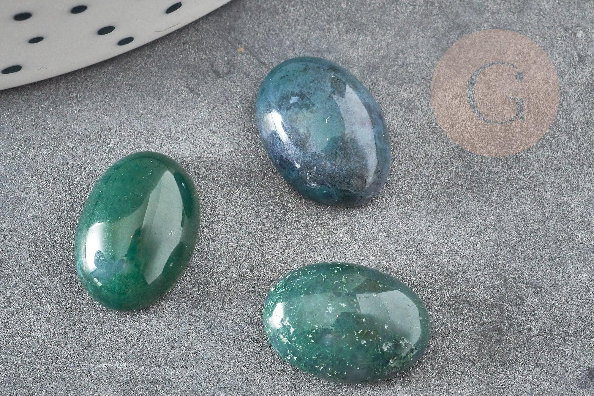 This oval-shaped natural moss agate cabochon (10x14mm) is an ideal stone for your unique and refined jewelry creations.