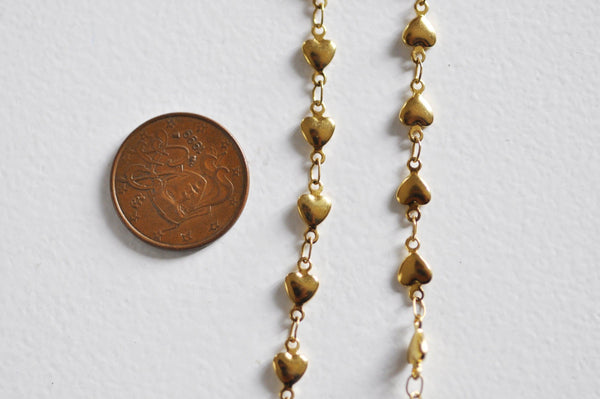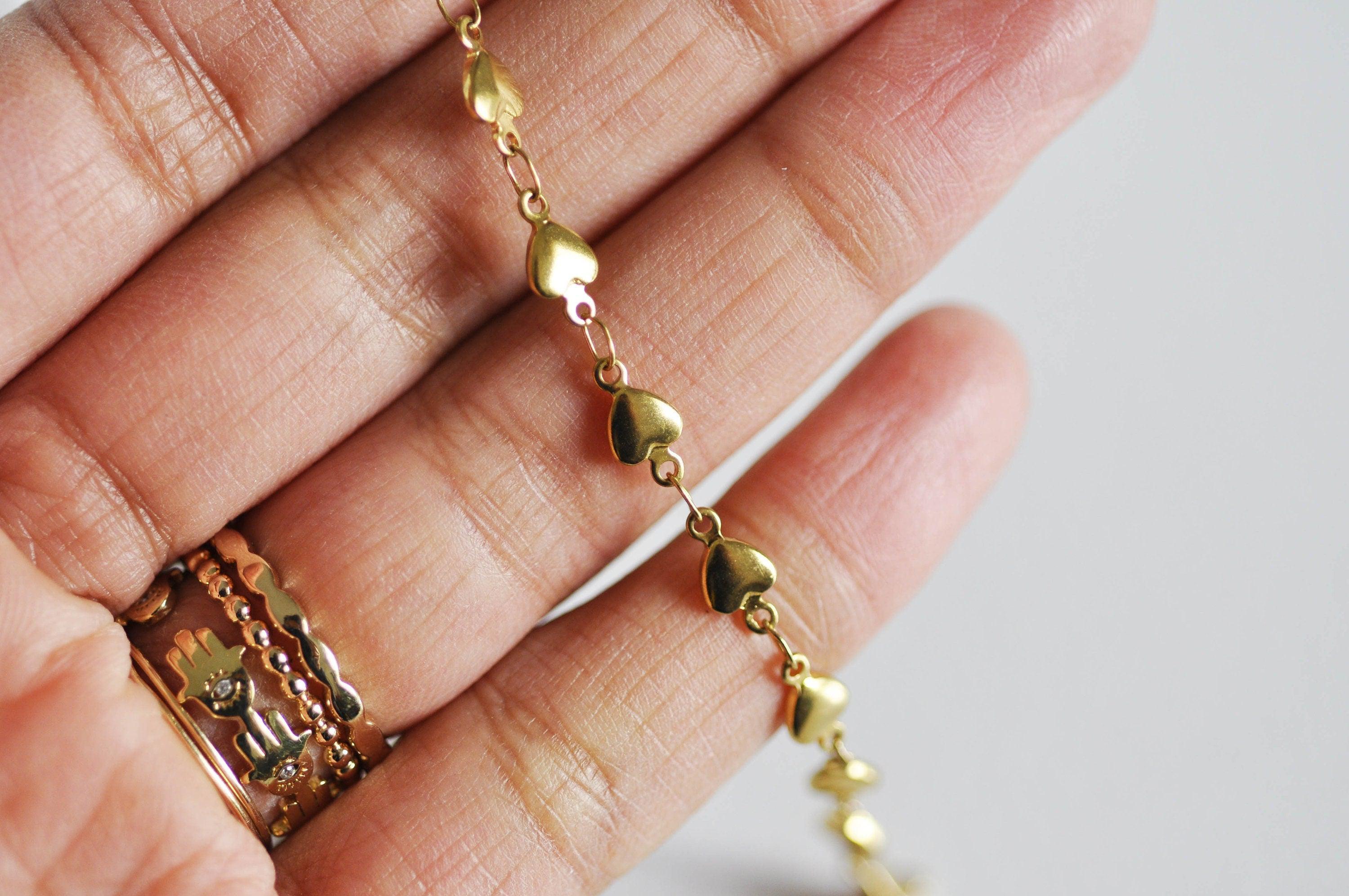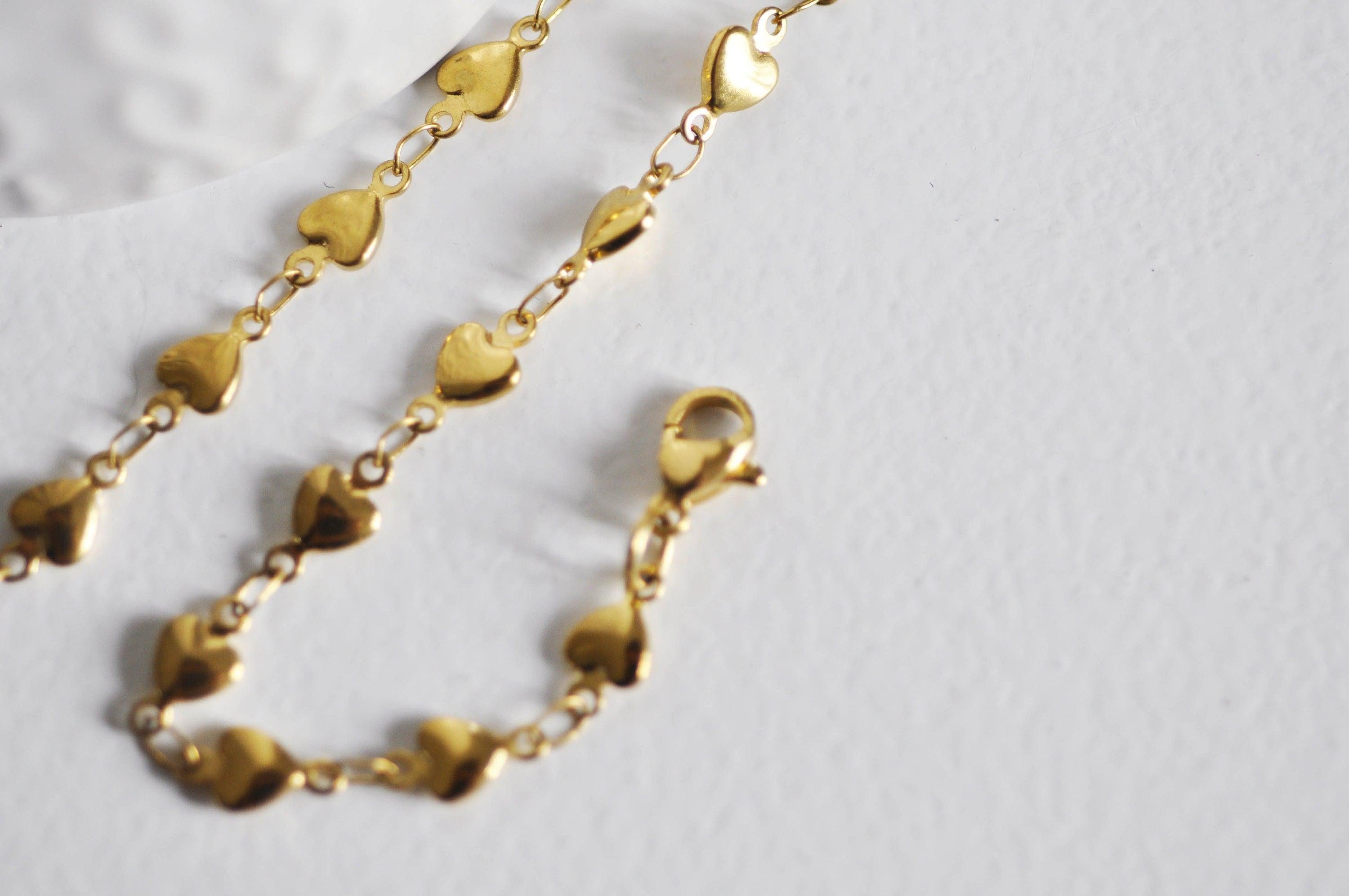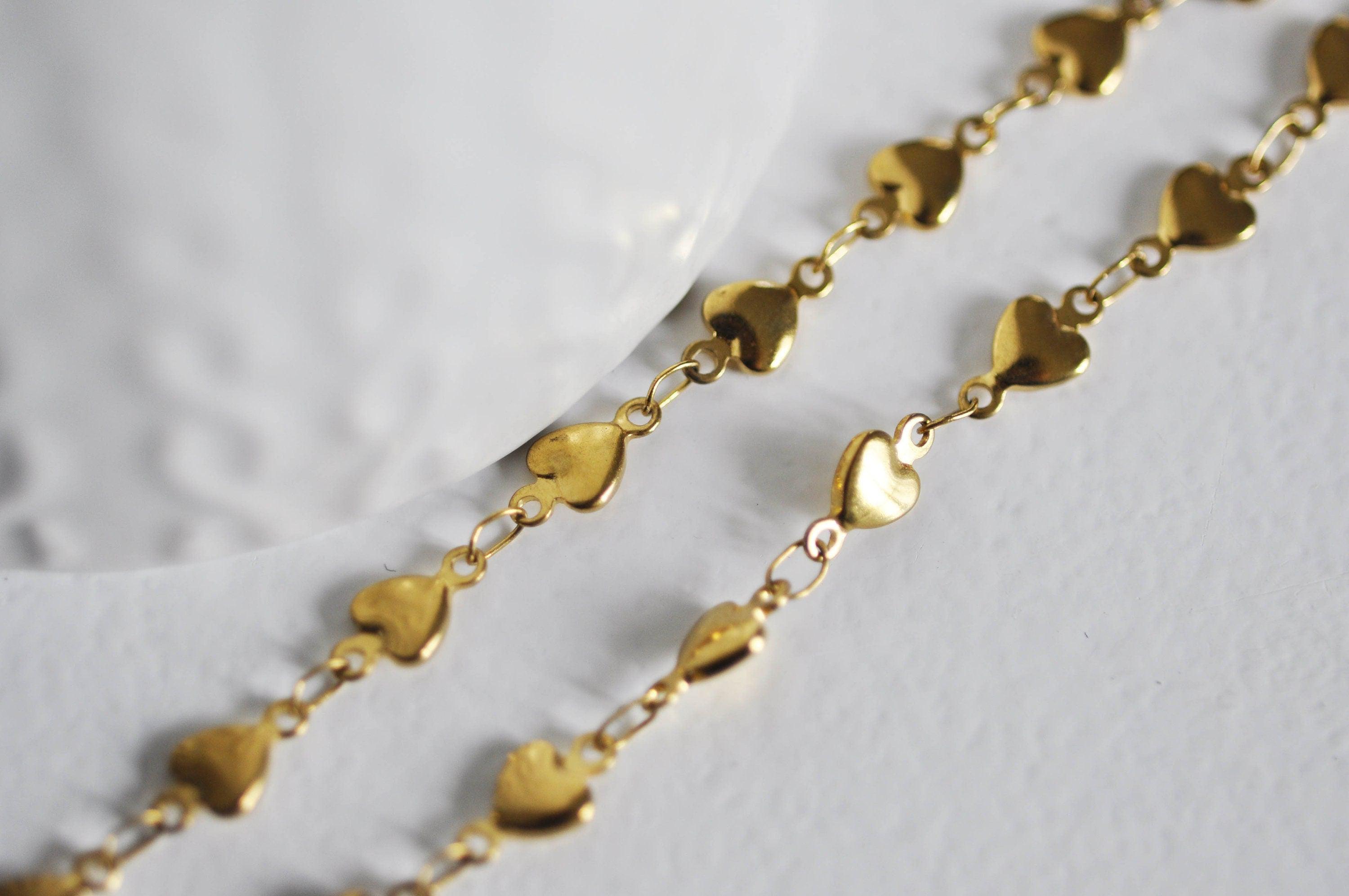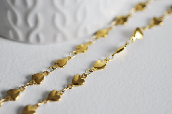 A fancy chain with small hearts in 14-carat gold color sold complete with clasp.