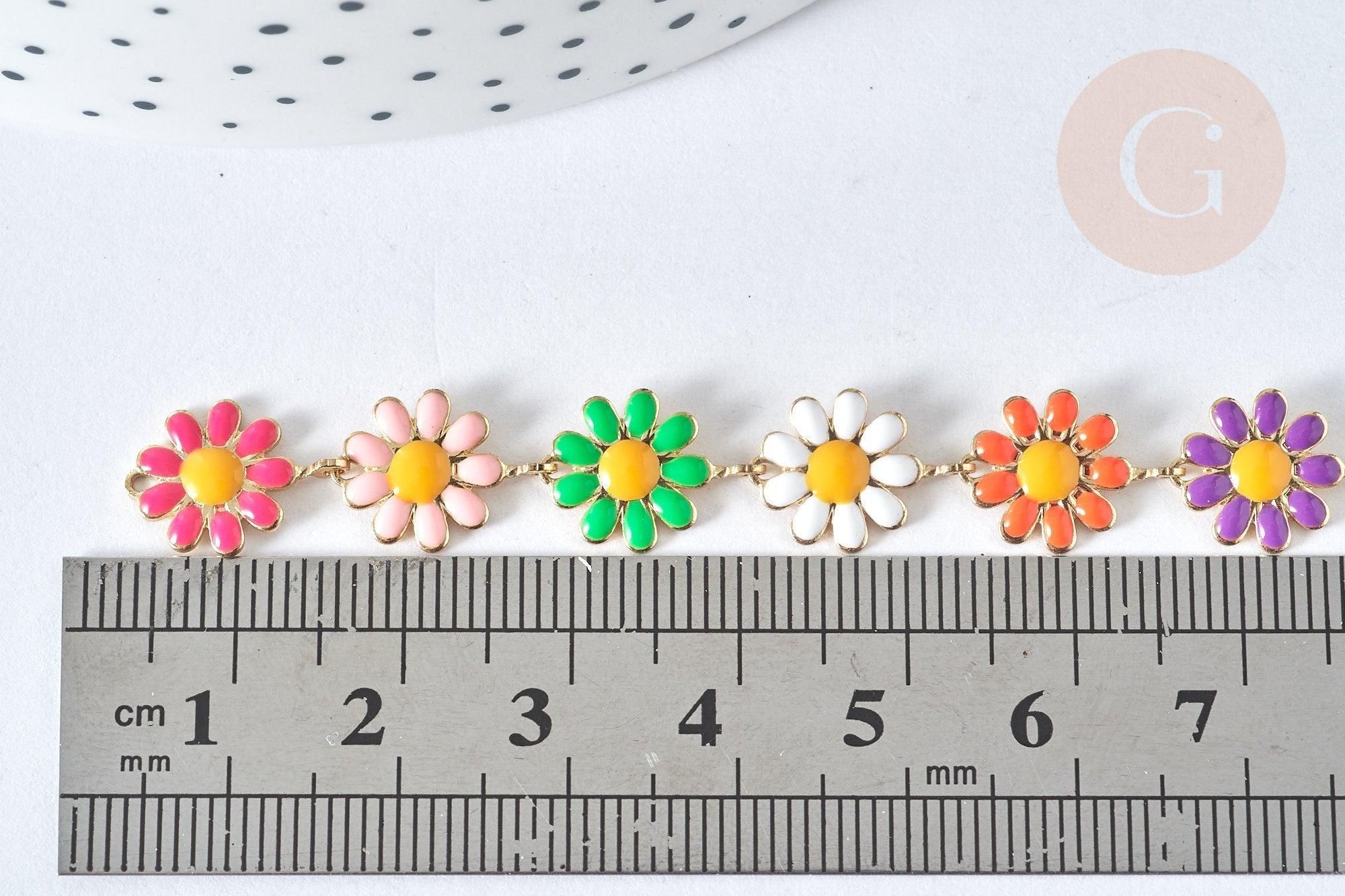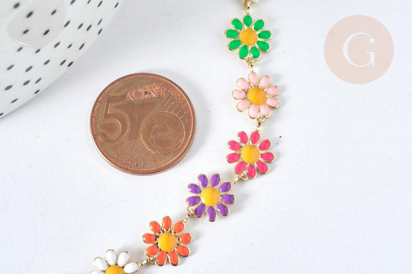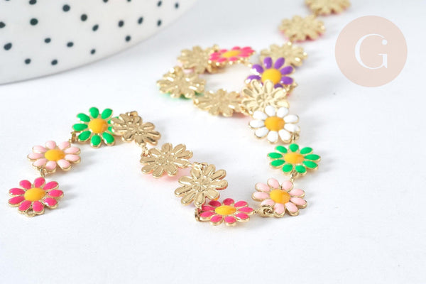 For your many DIY jewelry creations , adopt this fancy chain of daisy flowers in golden brass with a colored enamel finish!
