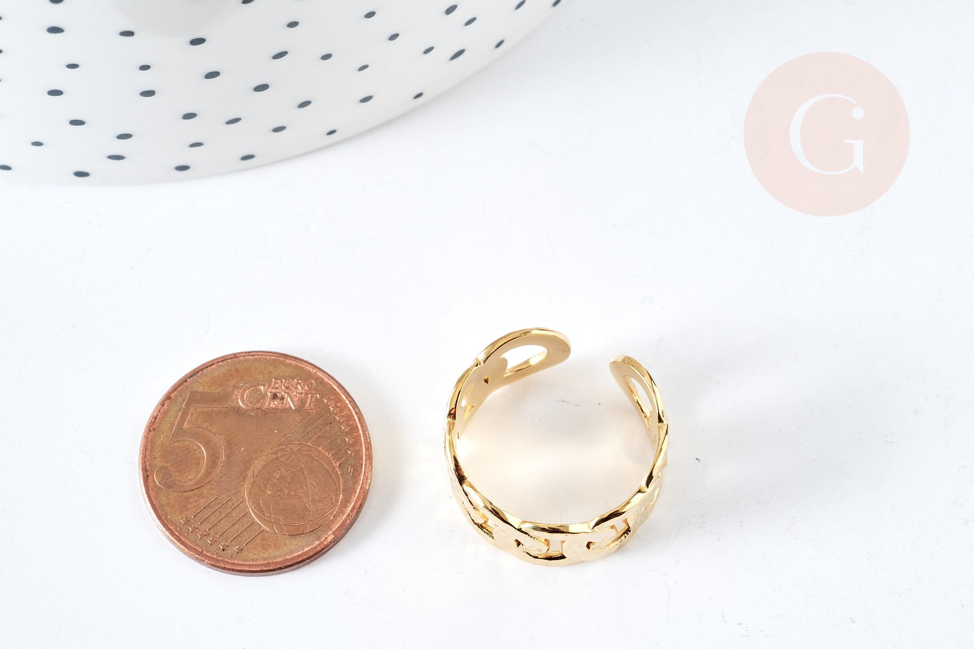 The unique design of this ring is made of gold-plated steel chain links with a hammered finish , to create an original and sophisticated look. With a size of 54, this adjustable ring easily fits most fingers, providing comfort and flexibility for the wearer.
