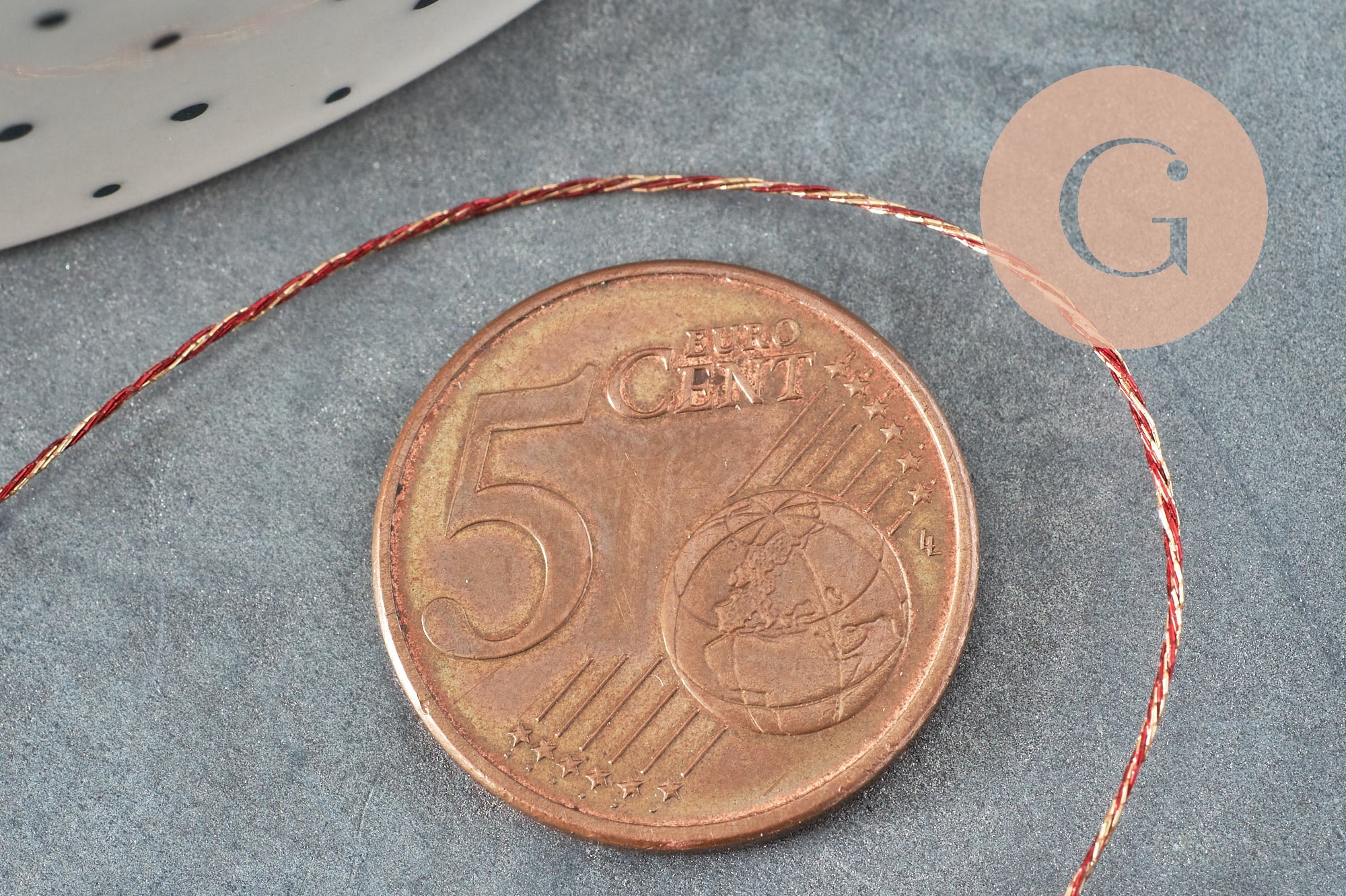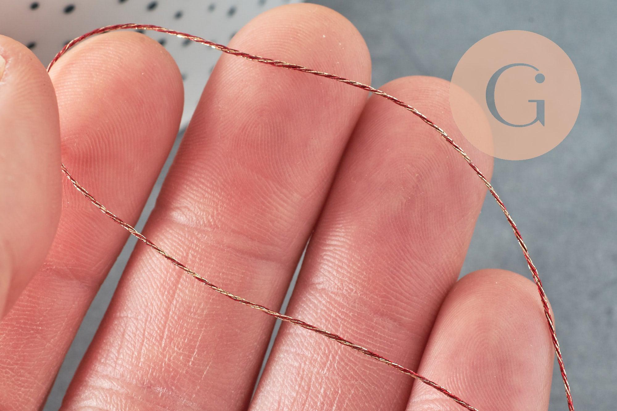 To make your jewelry, accessories, bags and clothes or for scrapbooking and other creative hobbies, we offer you this metallic red & gold cord sold in 50m spools.