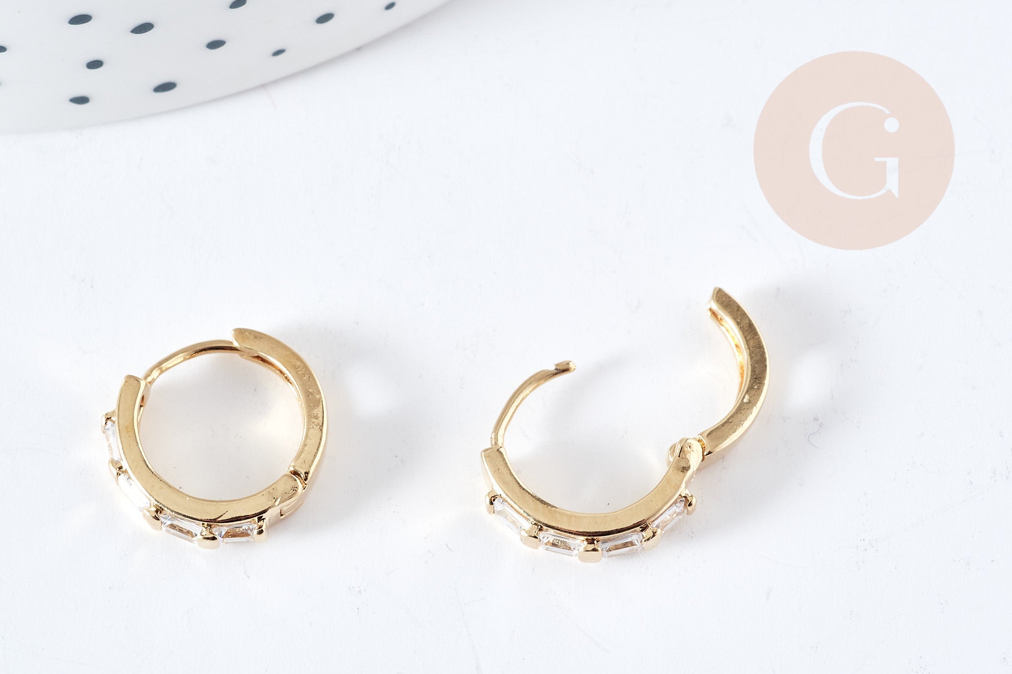 EP-Mini hoop earrings with zircons, 18K gold-plated brass, 15mm, pair (G8760)