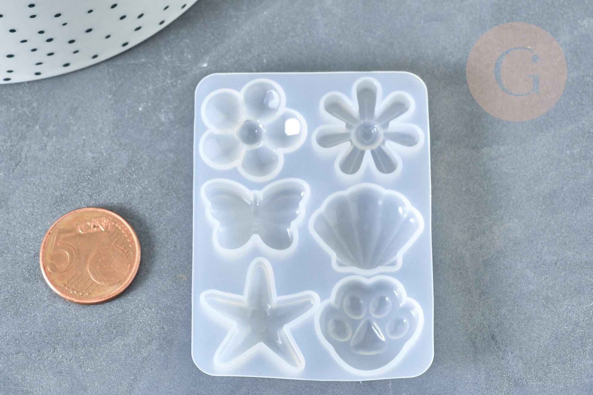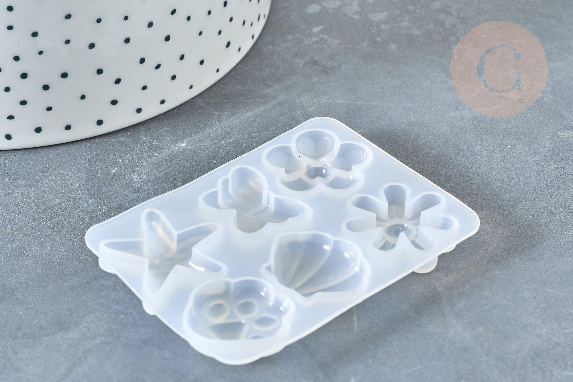 Several shapes are available on this silicone mold: flower, butterfly, shells, dog prints.