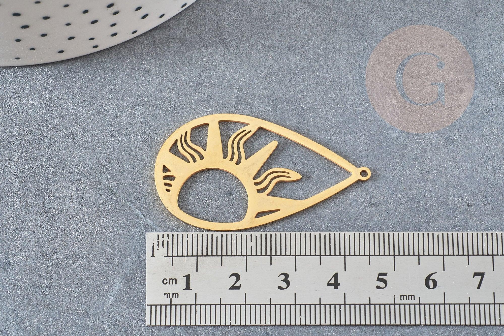 A gold-plated steel pendant in the shape of a drop and a sunbeam.