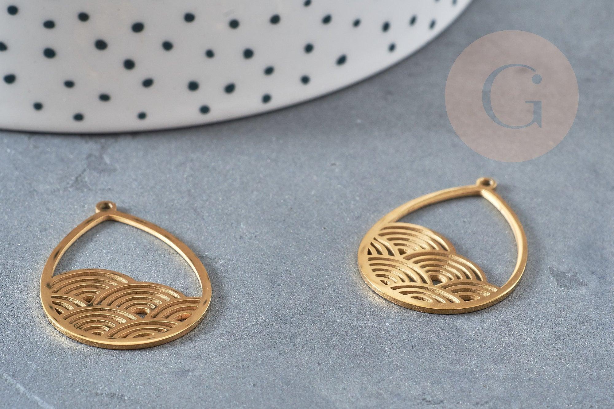 Pendentif acier doré goutte de pluie 30mm, breloque doré, acier inoxydable doré, pendentif sans nickel, x1, G5727