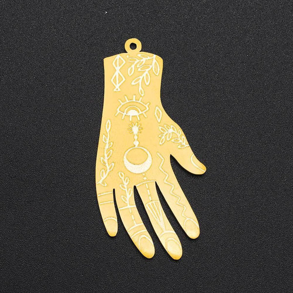 Pendentif acier doré main mystique 49mm,acier inoxydable doré sans libération de nickel,création bijoux chance, x1 G6243