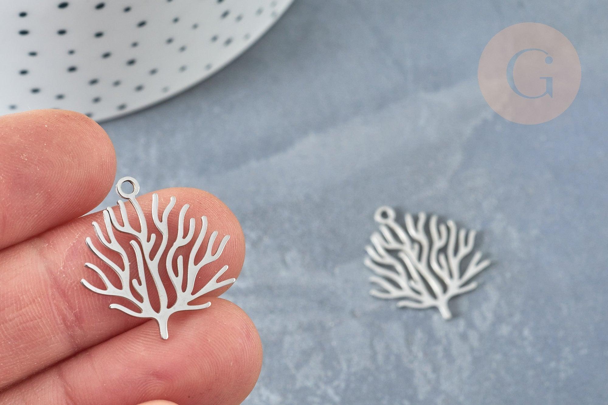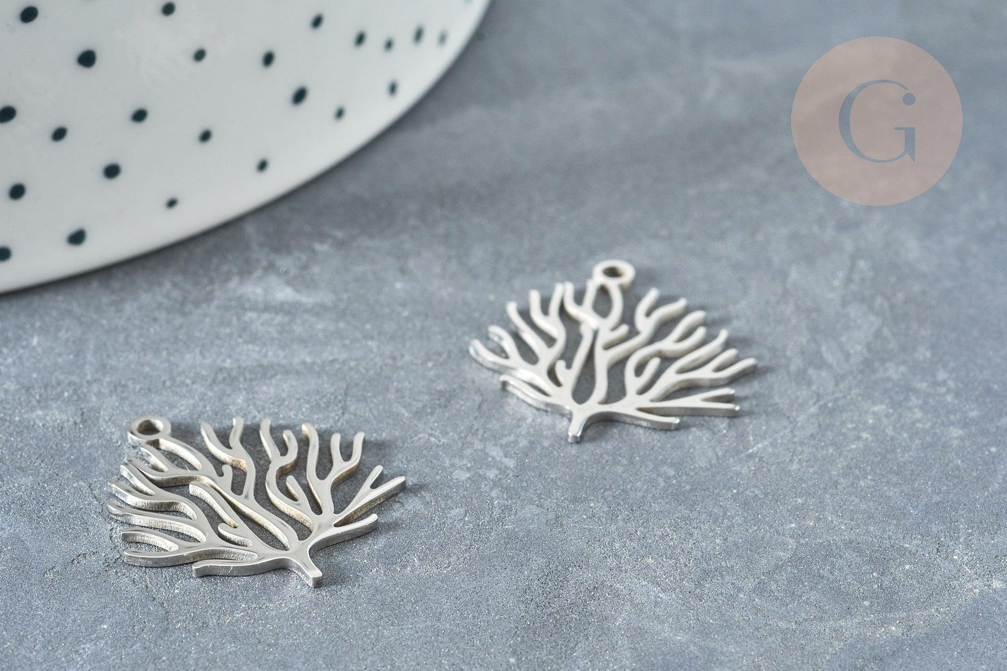 Adopt this silver stainless steel pendant representing a coral branch , a tropical pendant to use in all your jewelry creations !