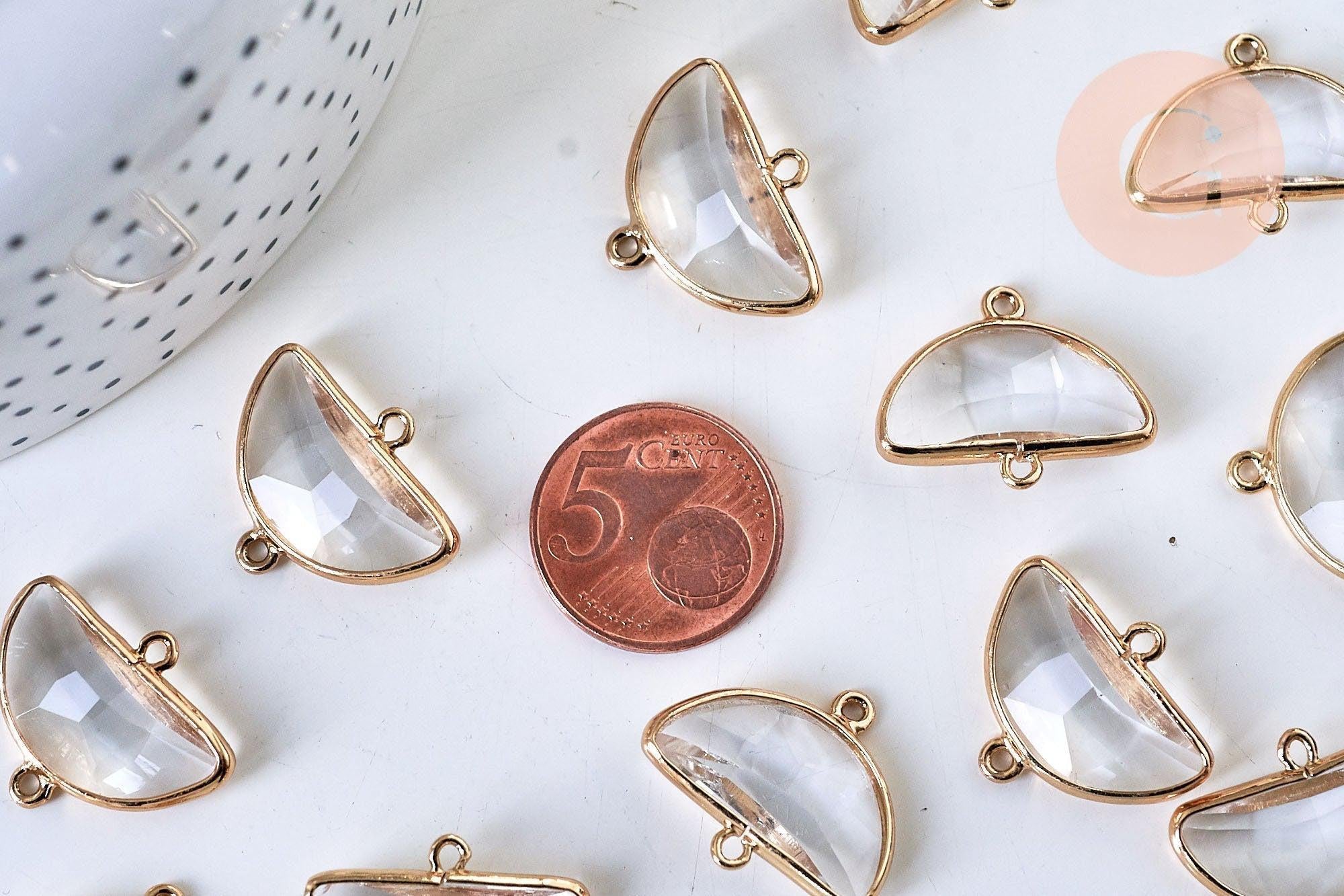 Pendentif connecteur demi-lune doré cristal transparent facettes,pendentif cristal, pendentif doré,création bijoux,24mm, x 2, G5584