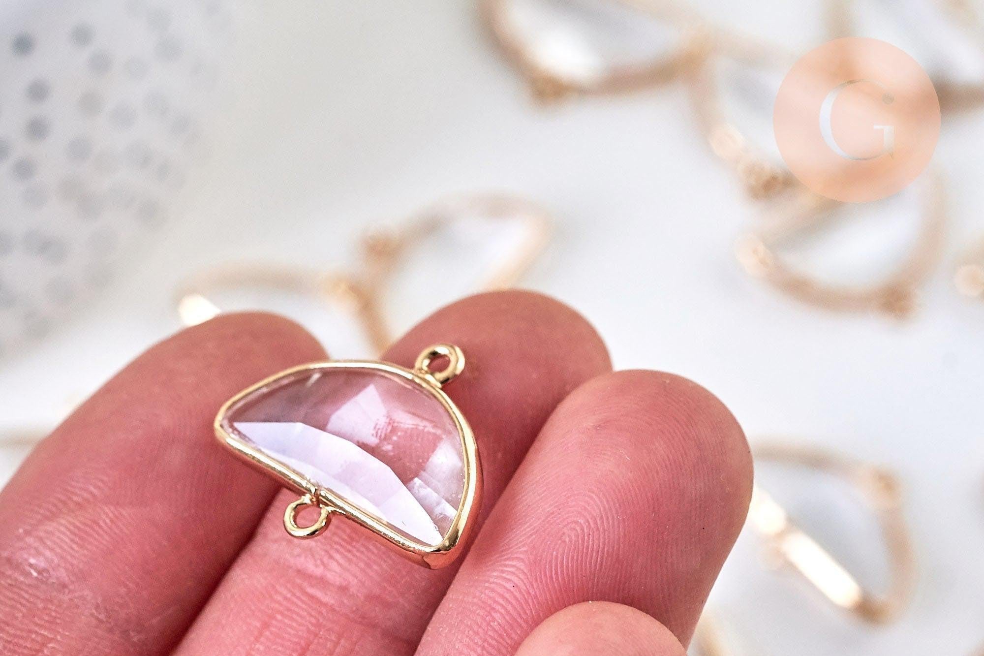 Half-moon connector pendant gold transparent crystal faceted, crystal pendant, gold pendant, jewelry creation, 24mm, x 2, G5584