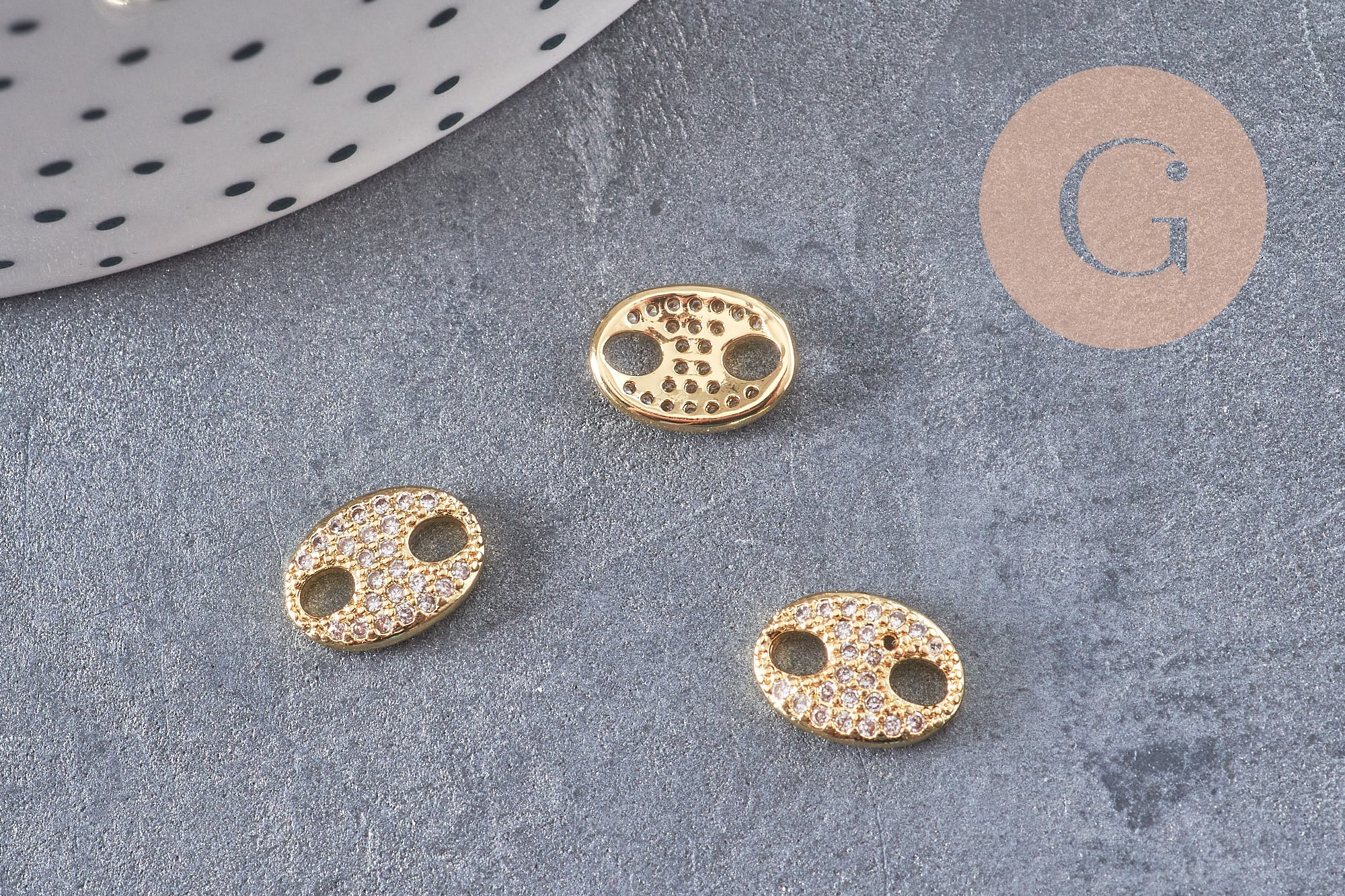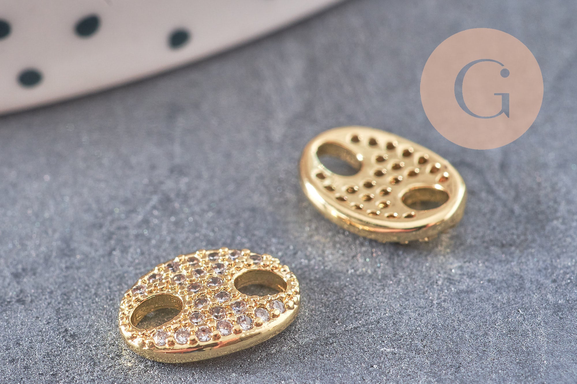 Add a touch of light and refinement to your creations with this oval connector pendant in 18-karat gold-plated brass , adorned with small white zircon crystals . Its delicate sparkle and elegant shape make it an ideal element for feminine and timeless jewelry.