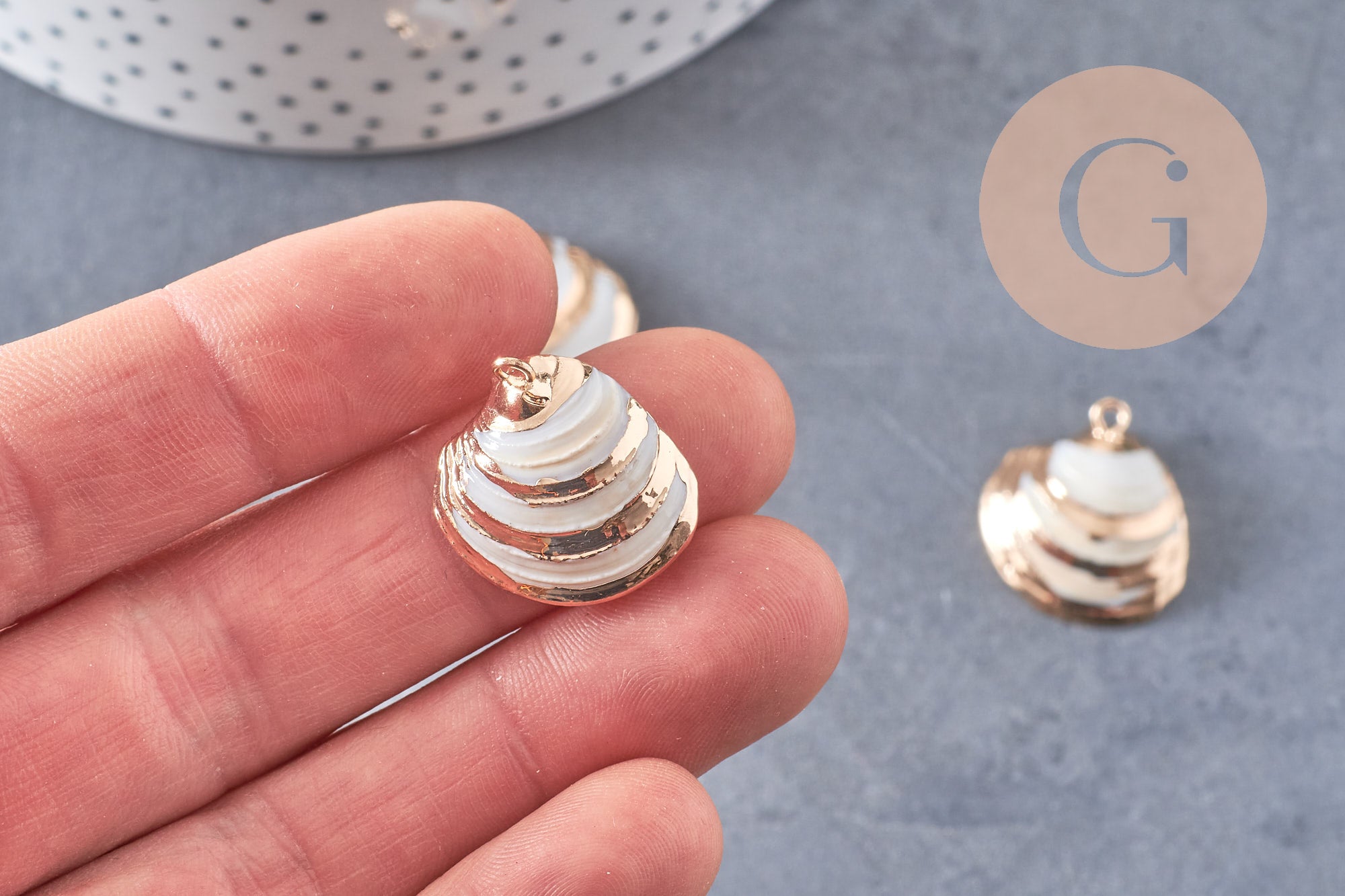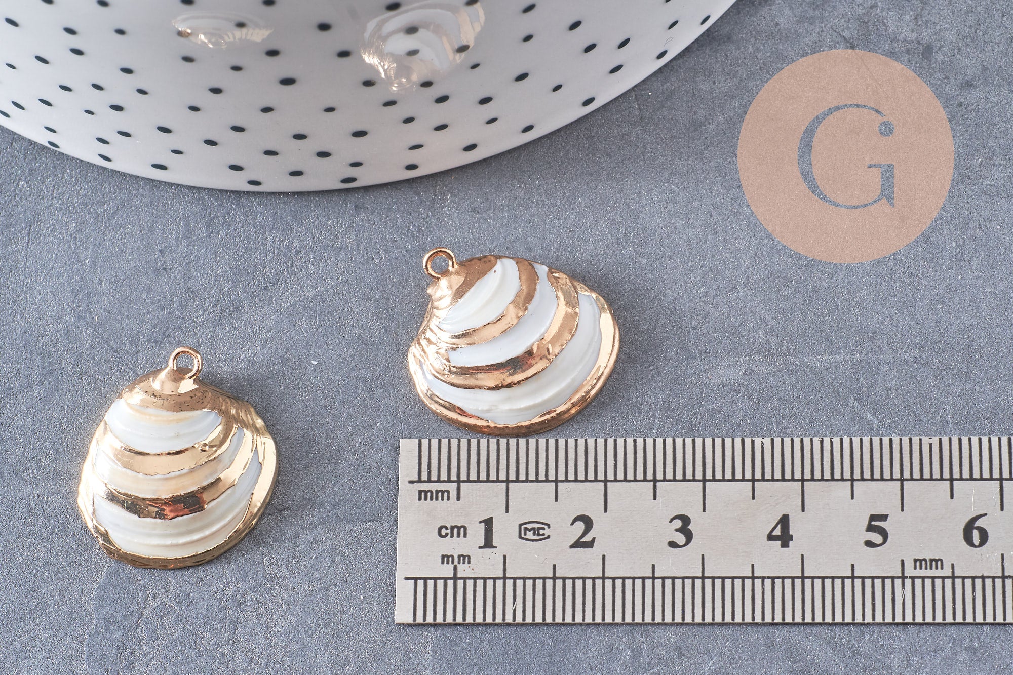 Pendentif coquillage naturel coque doré,pendentif doré, création bijoux, coquillage bijou,coquillage or,22-29mm, x 2,G3088