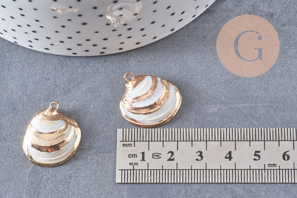 Natural shell pendant, golden shell, golden pendant, jewelry creation, shell jewel, gold shell, 22-29mm, x 2, G3088