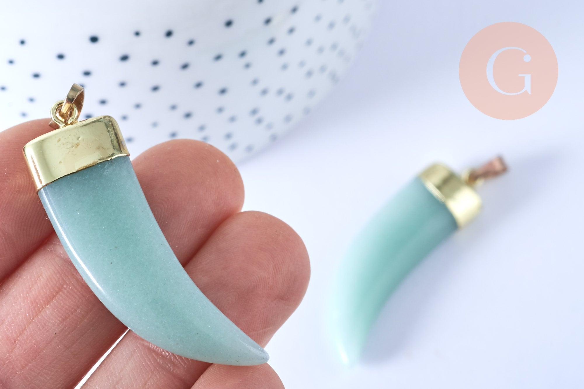 Fall for this natural aventurine horn pendant with its golden brass support. You can create beautiful necklaces, earrings, necklaces and bracelets using this very trendy pendant. Simply use your pendant with a pretty complete chain or a knotted cord, alternating with spacer beads