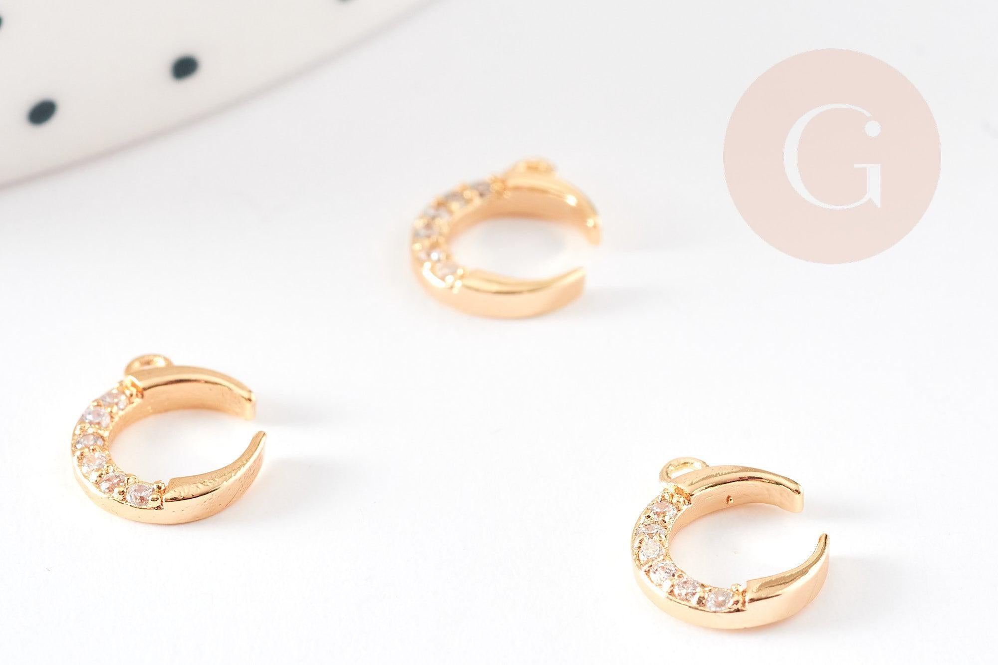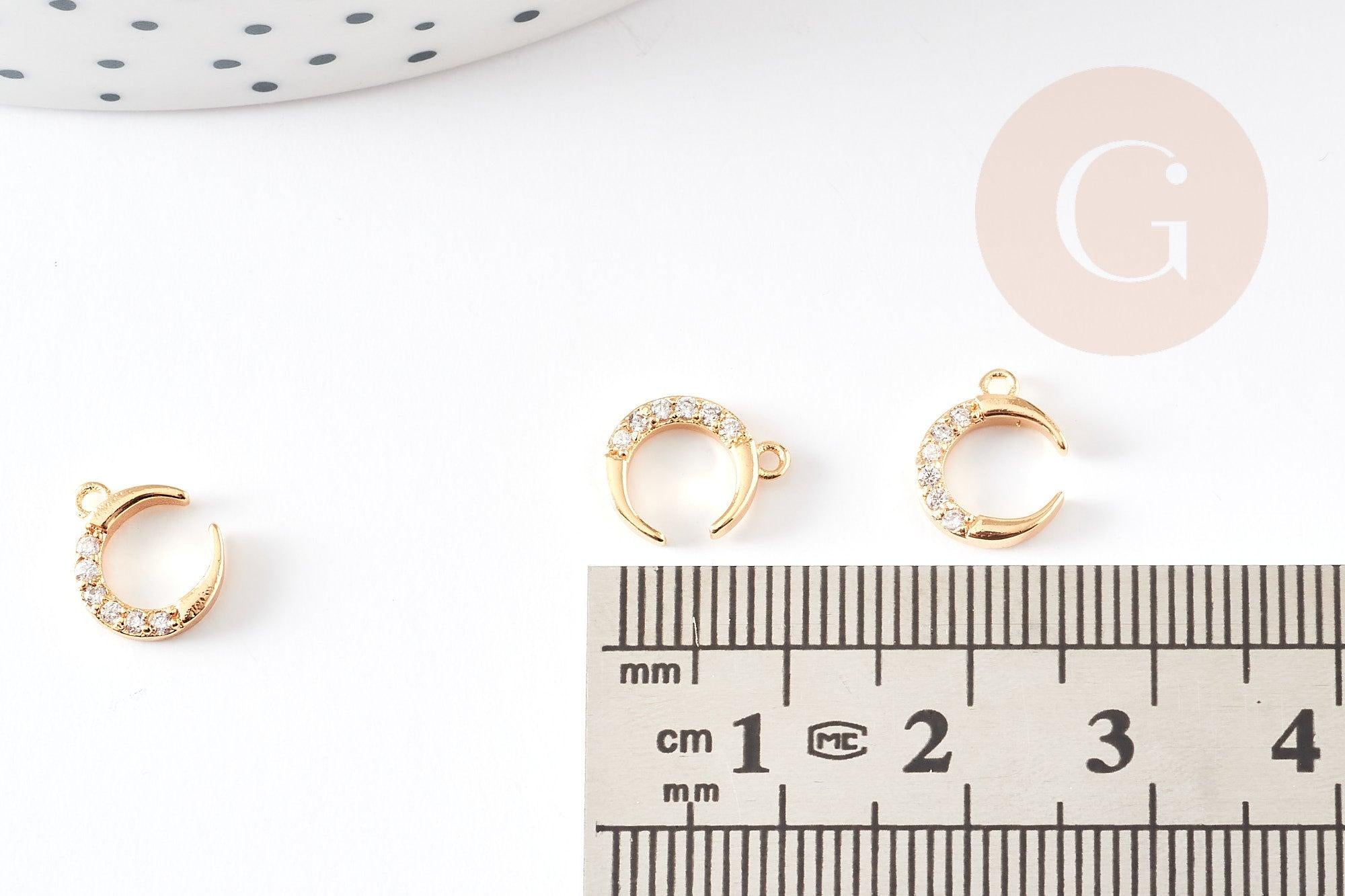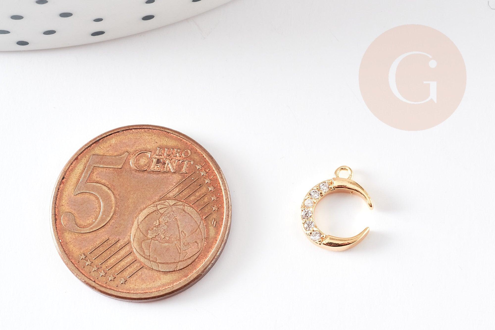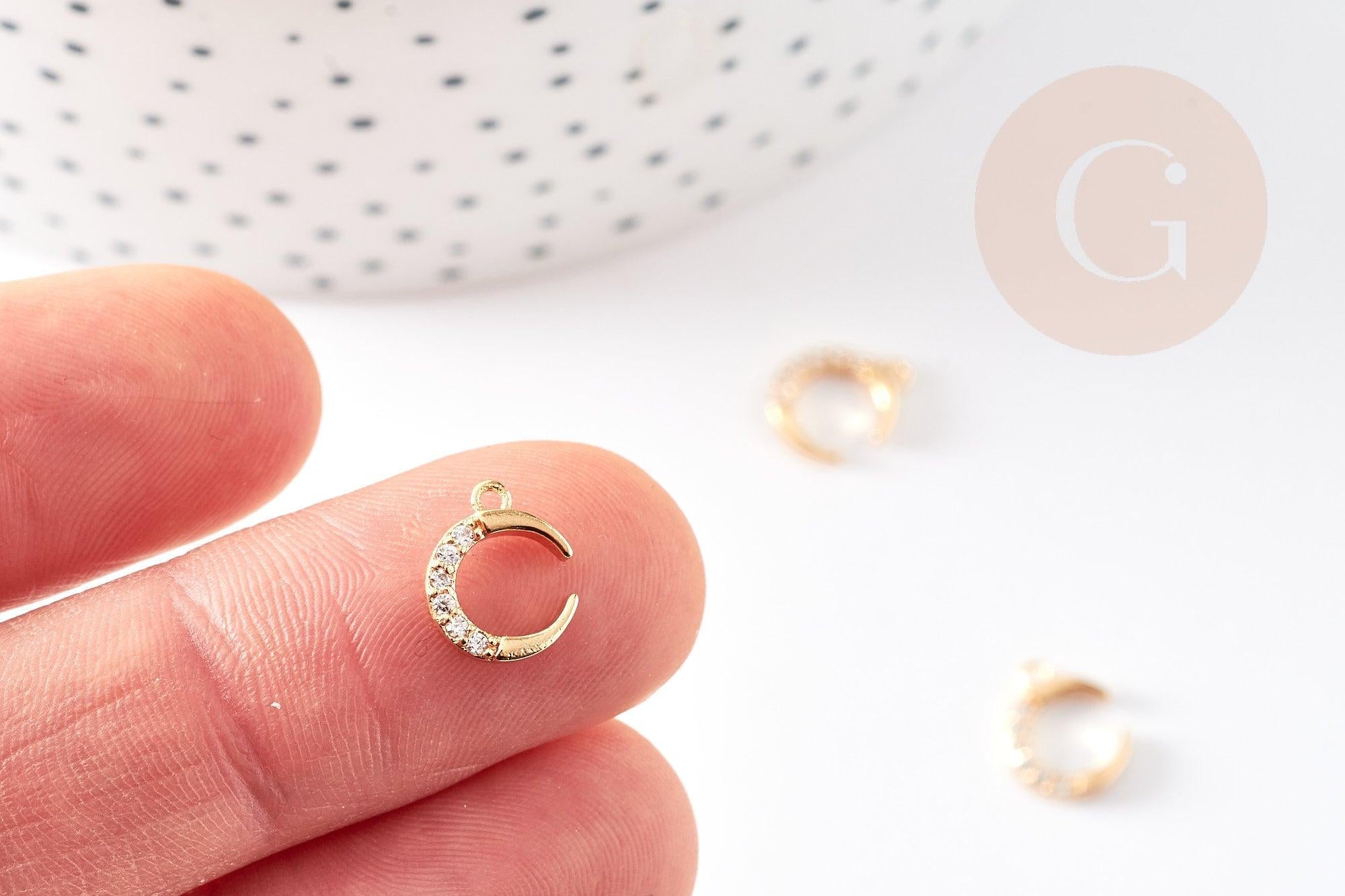 18k gold plated brass crescent moon pendant, zircon moon, gold plated supply, jewelry creation, gold plated moon pendant, 10mm, x1 G0443
