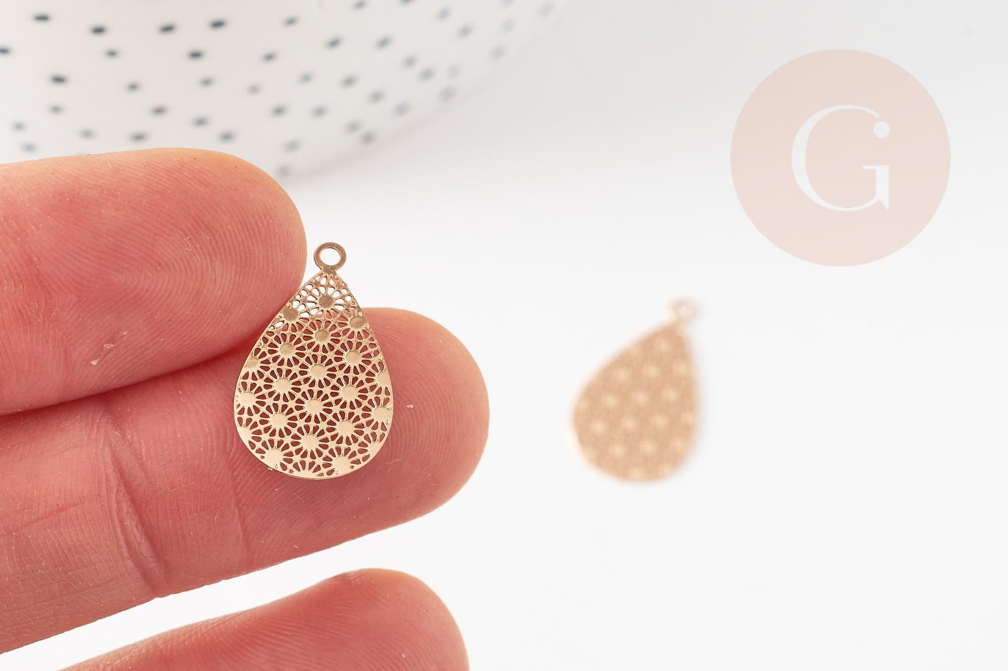 Discover our teardrop-shaped print pendants with a geometric pattern in gold-plated brass , measuring 19.5 mm. These pendants with a delicate and light design will bring a touch of geometric elegance to your jewelry creations.