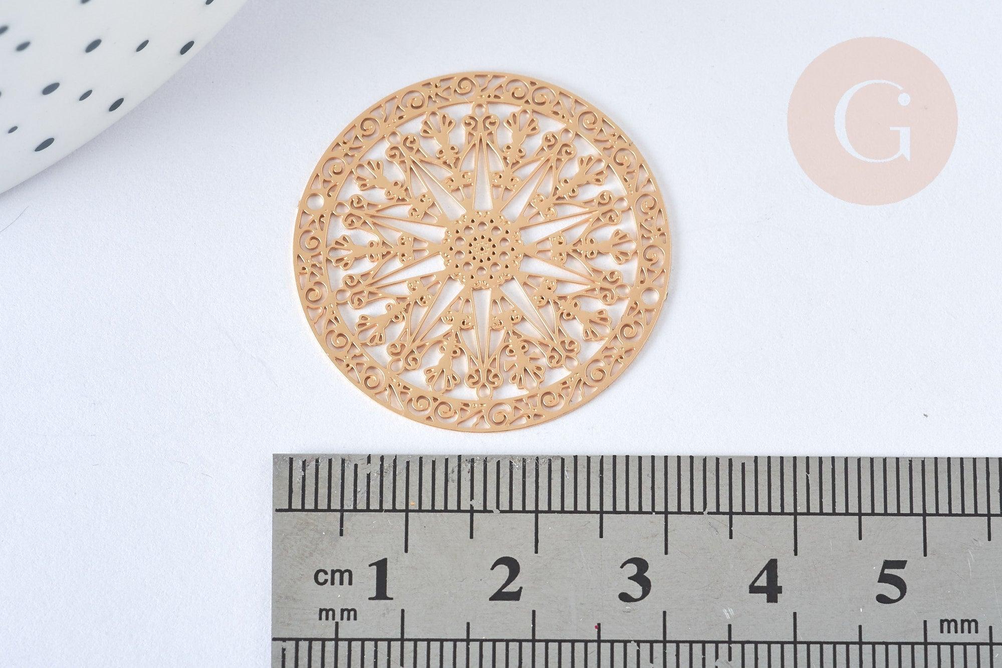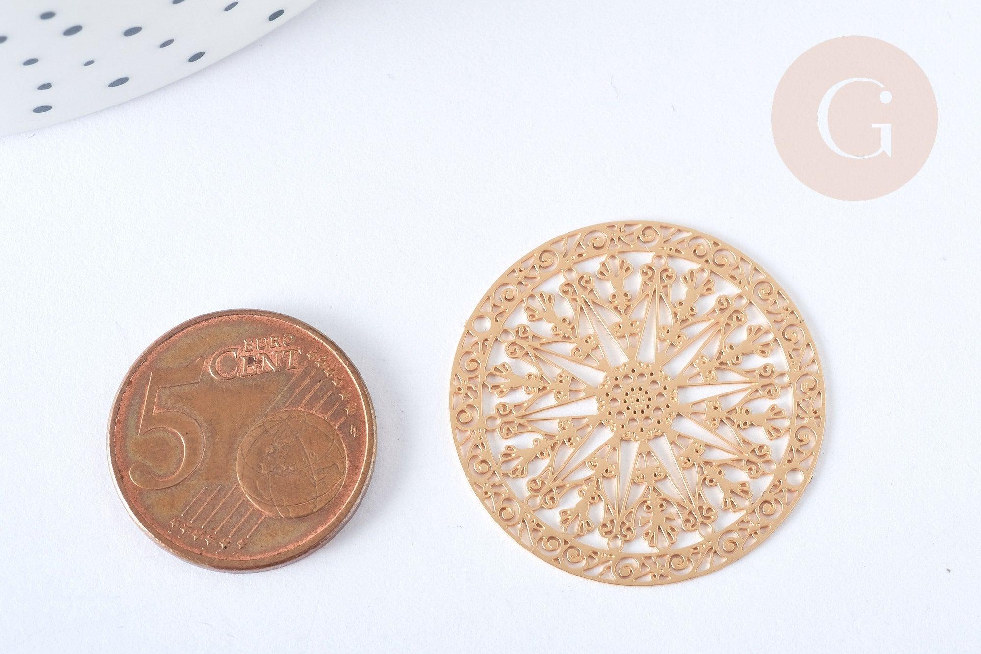 This round openwork rosette pendant is perfect for creating costume jewelry with a bohemian chic look, with a pop look depending on the stones and pearls you choose.