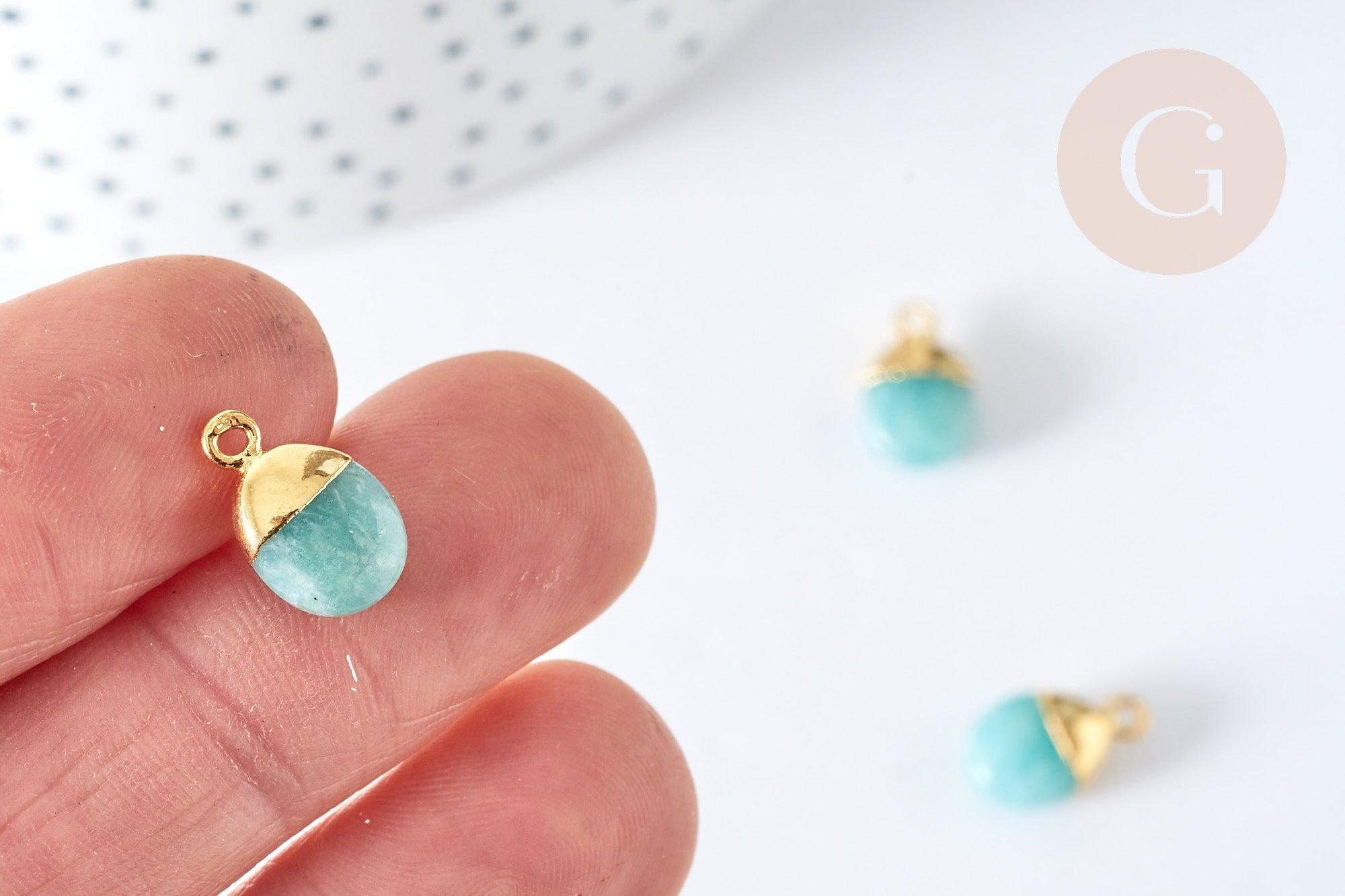 Fall for this drop pendant in natural amazonite with its solid 925 silver support, 18K gold-plated