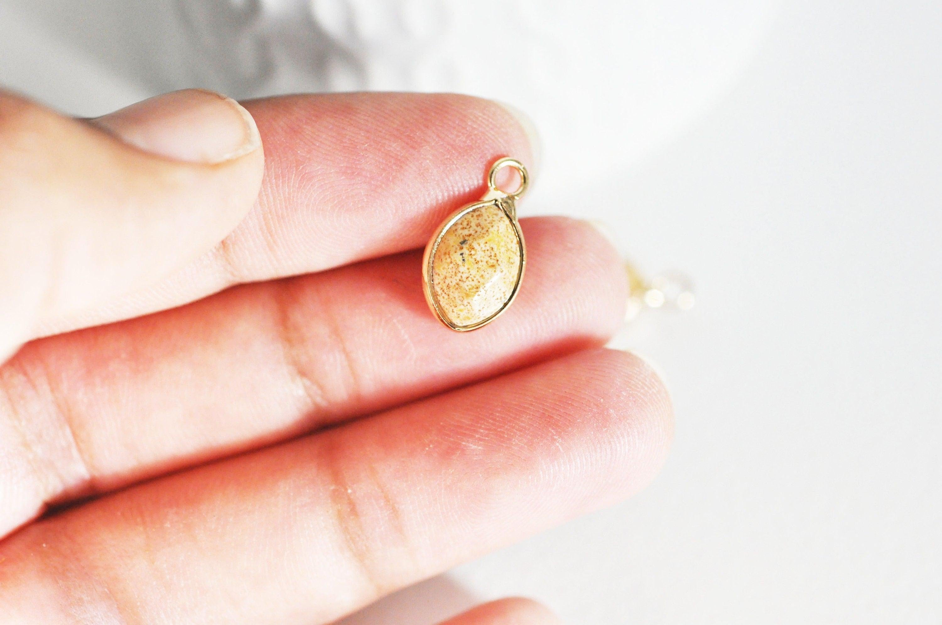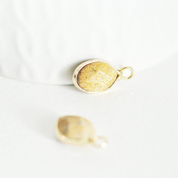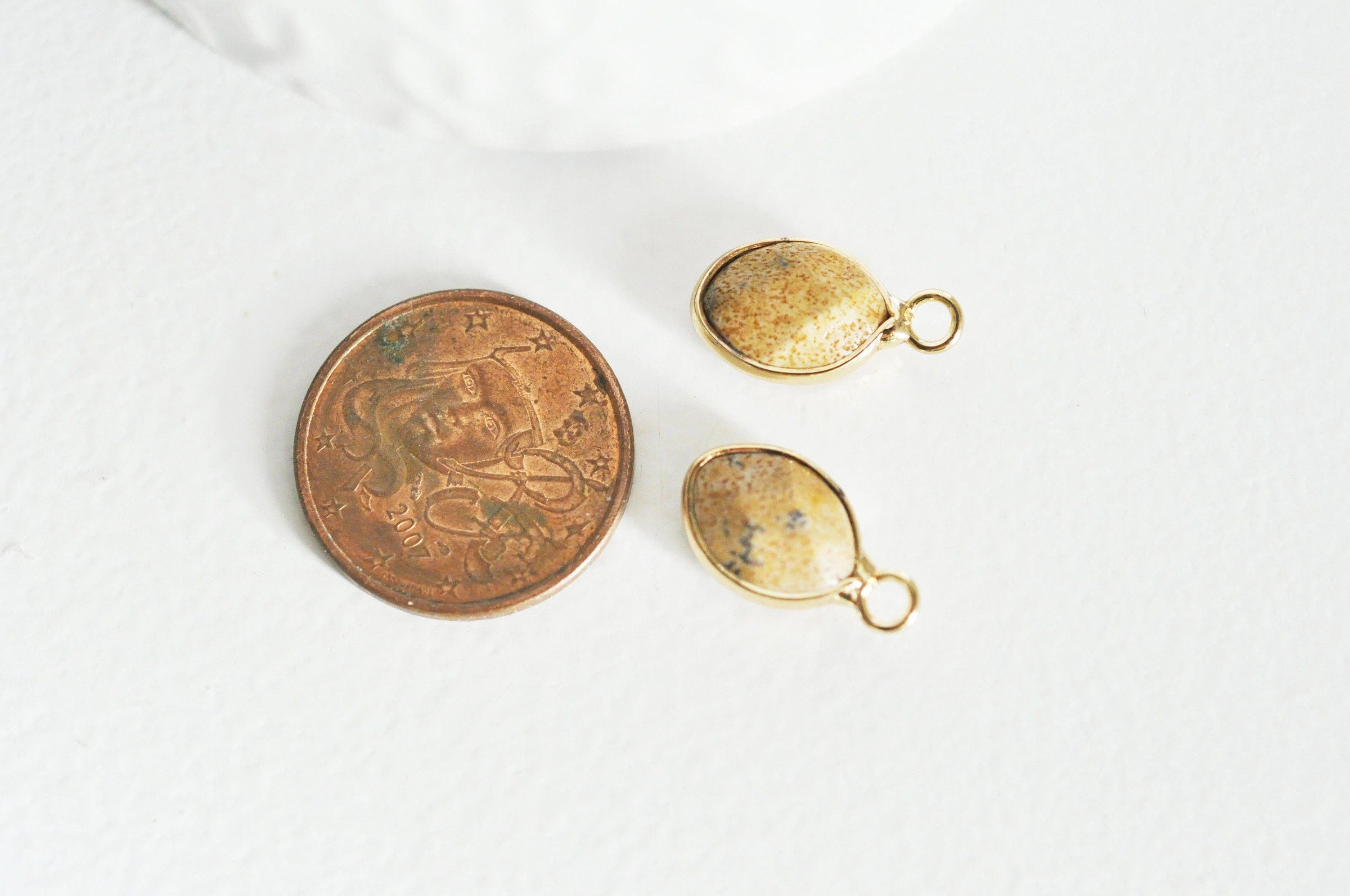Fall for this very discreet little pendant in natural landscape jasper with its gilded brass support.