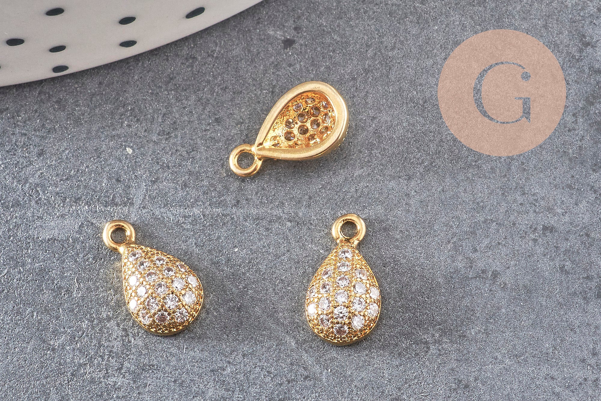 Gold crystal zircon drop pendant, creative supplies, golden pendant, crystal pendant, golden jewel, jewelry creation, 10.5mm, each