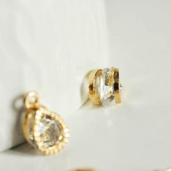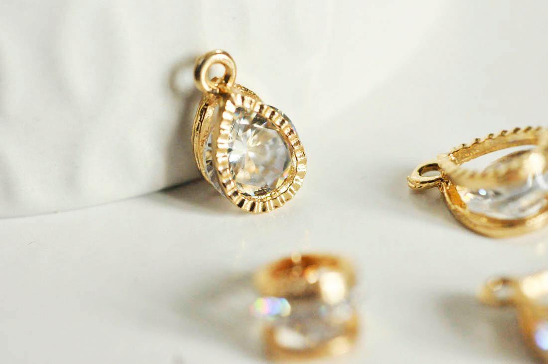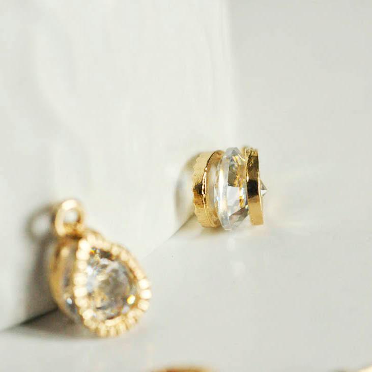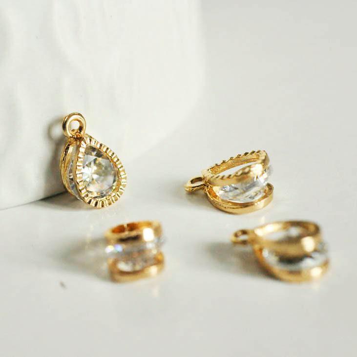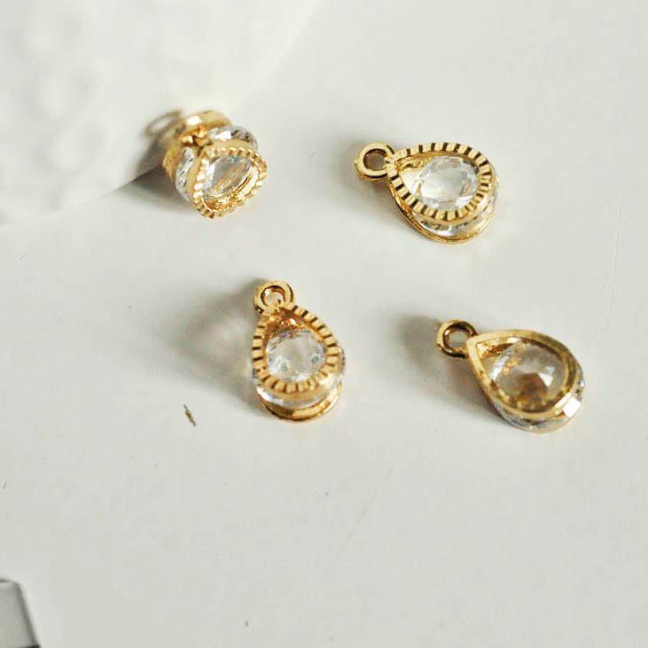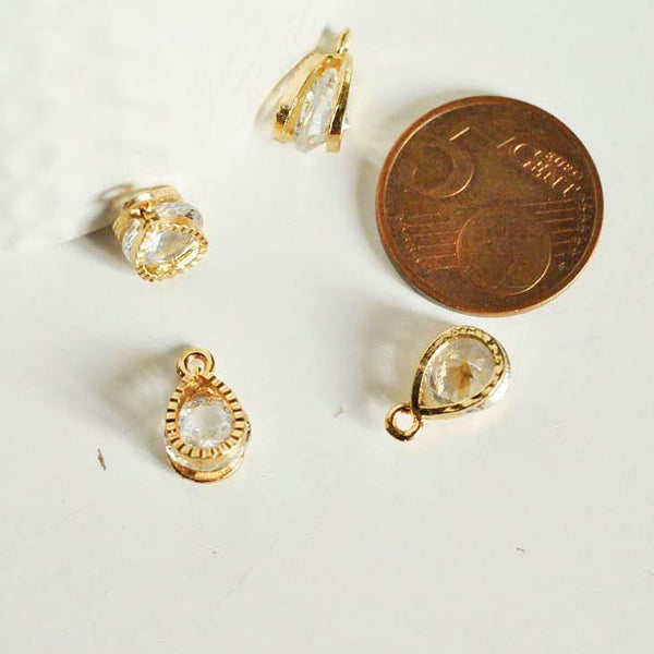 Gold crystal zircon drop pendant, creative supplies, golden pendant, crystal pendant, golden jewel, jewelry creation, 13mm, all 4