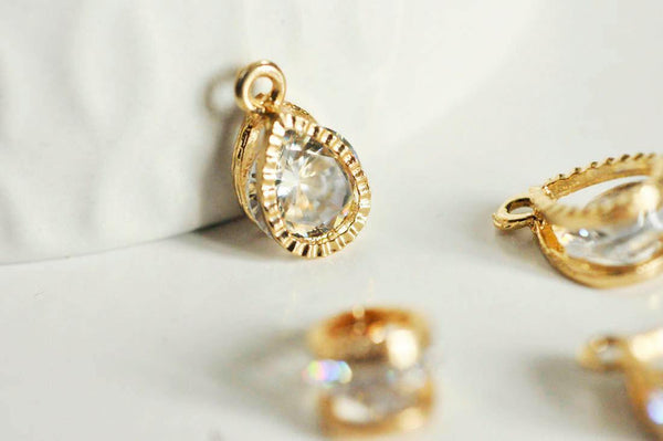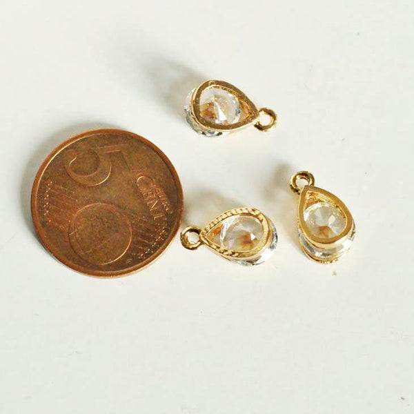 Gold zamac drop pendant with zircon crystal 13mm, gold pendant, crystal pendant, gold jewelry, jewelry creation, X4 (G6856)