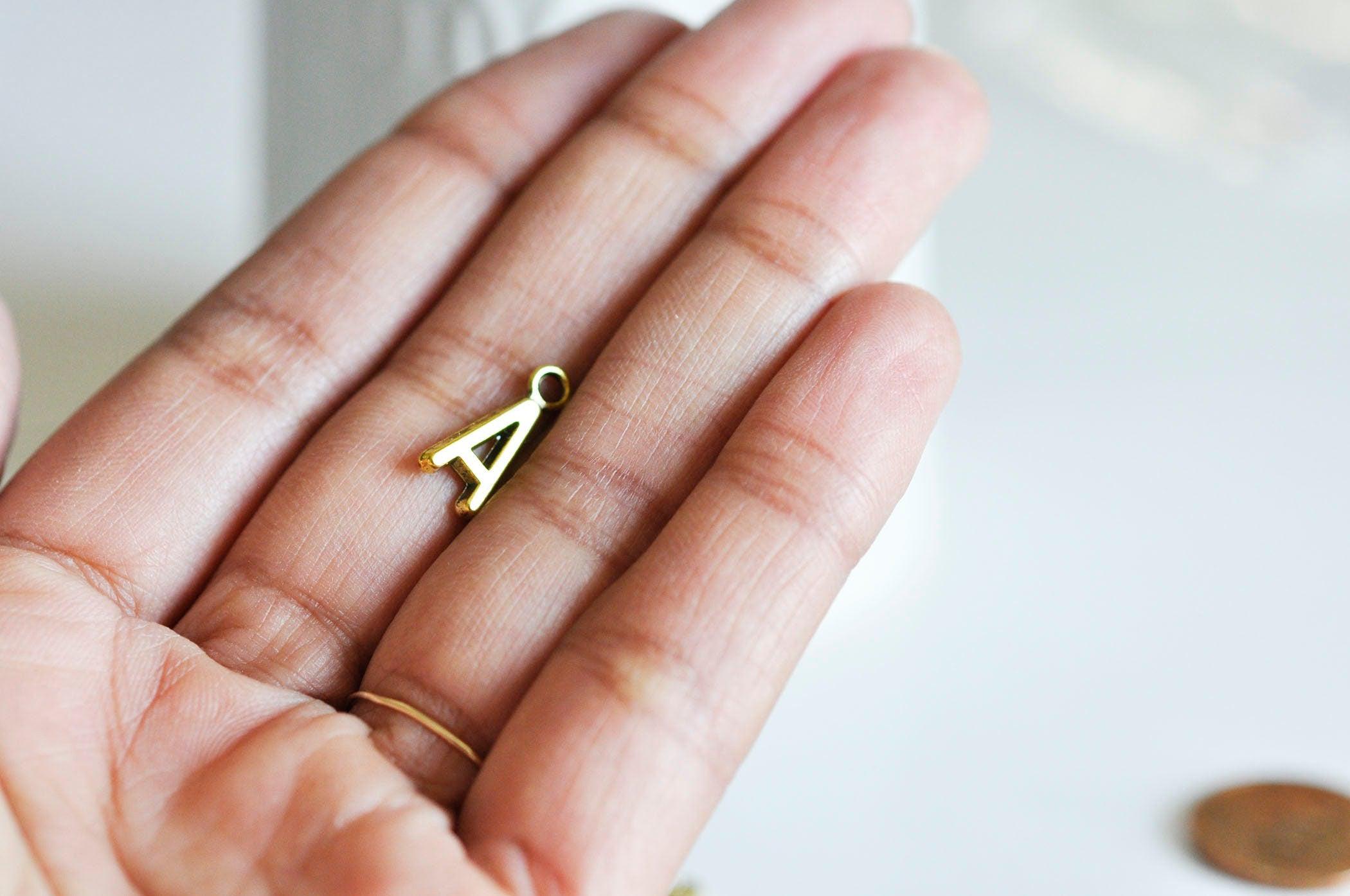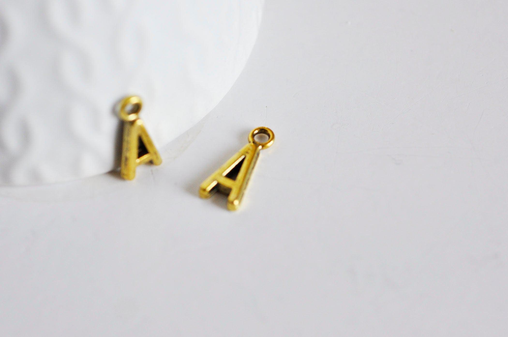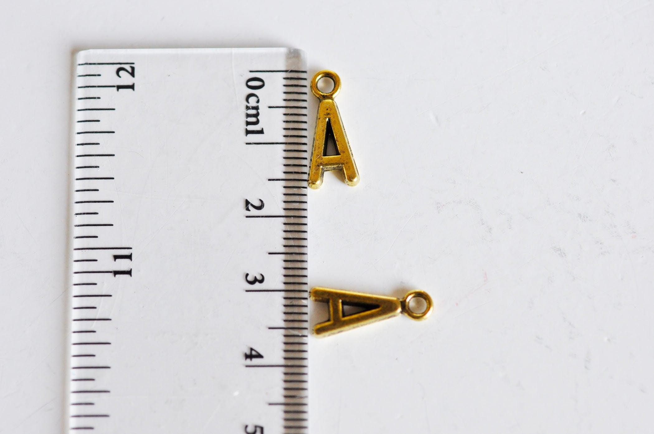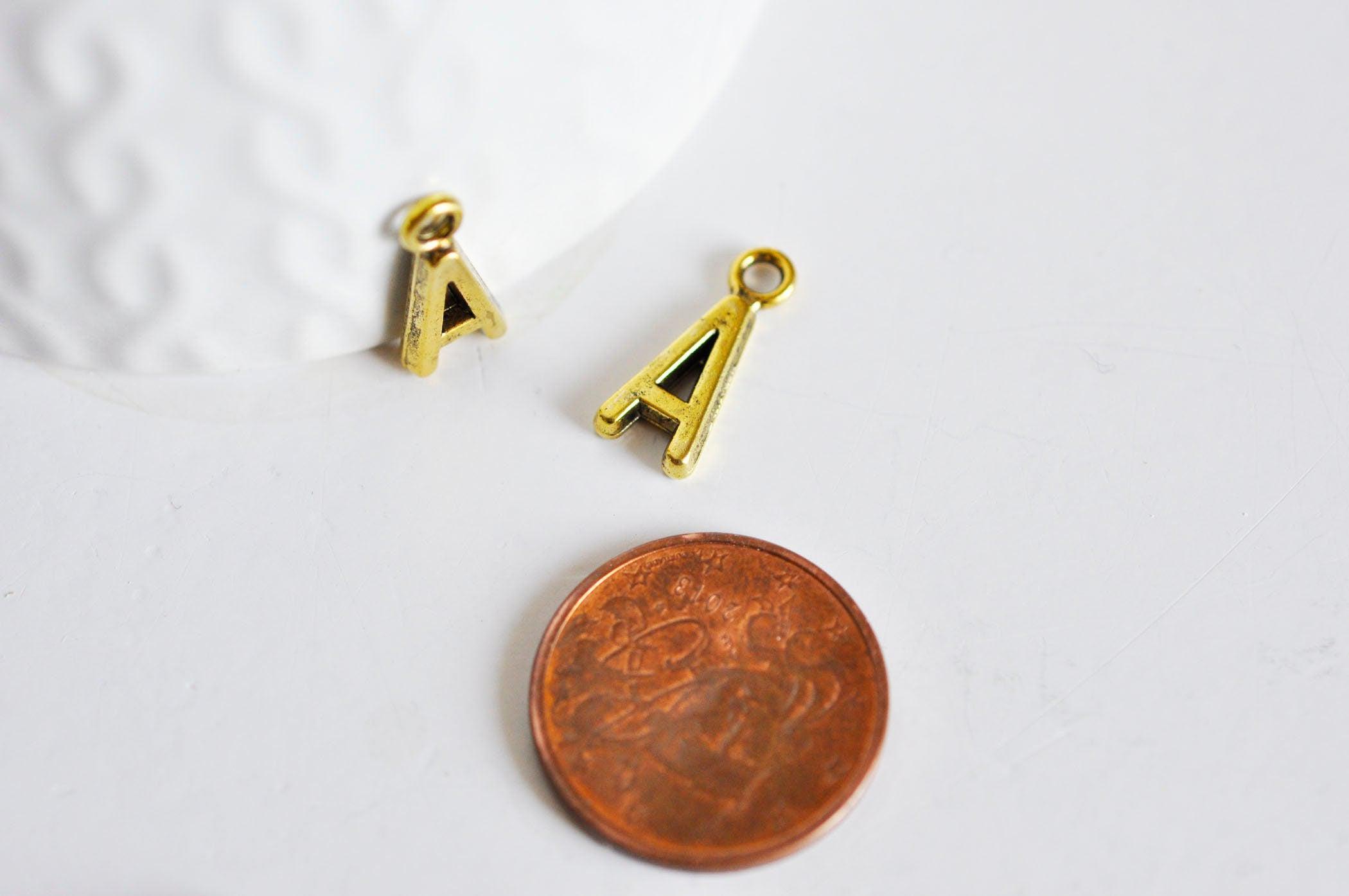 Letter pendant for A gold, creative supply, alphabet, alphabet letter pendant, Tibetan silver gold, jewelry creation, set of 10, 16mm A patinated gold letter A pendant in Tibetan silver Dimensions: Length: 16mm Width: 7mm Hole: 2mm. Nickel free Unleaded sold...