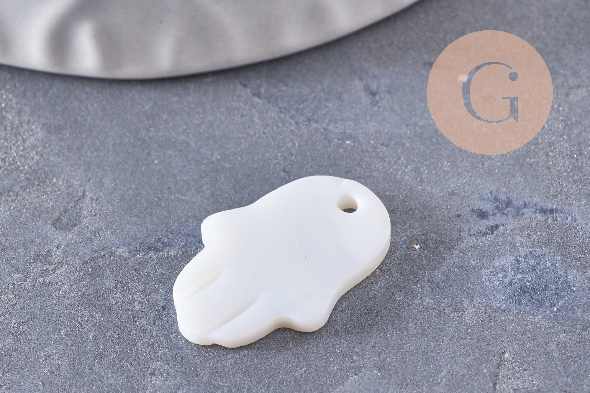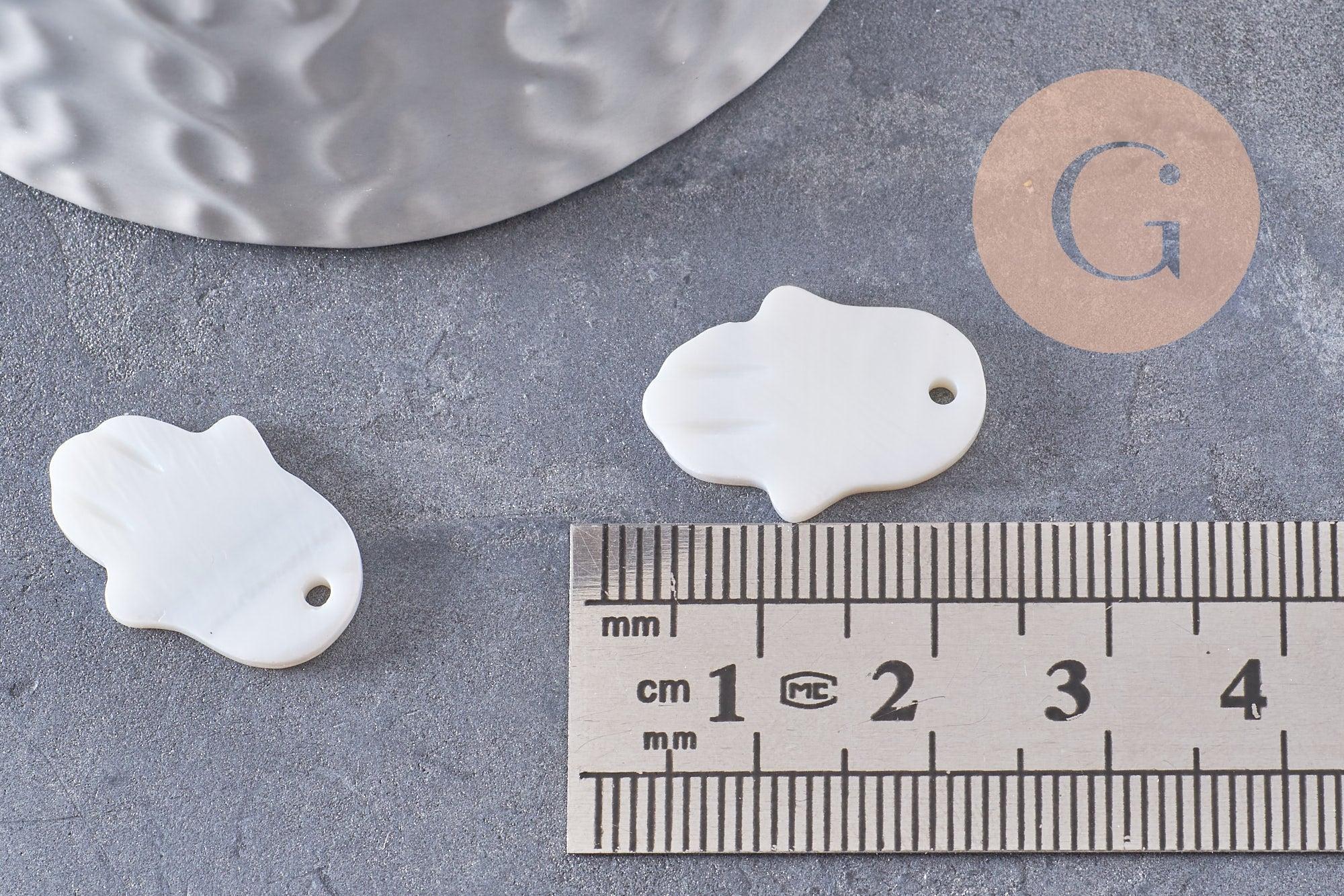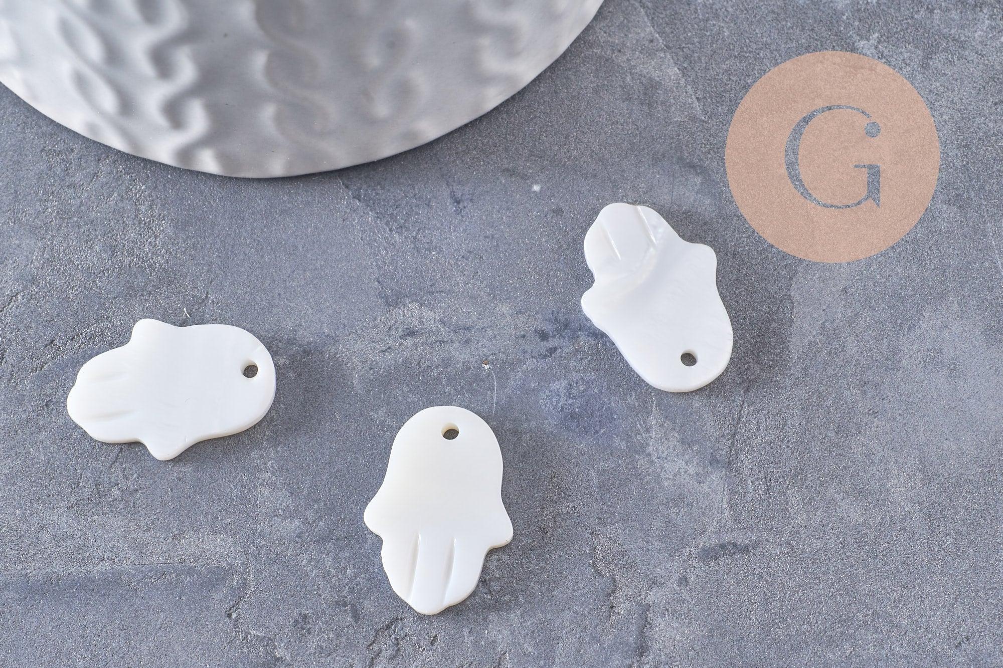 A natural white mother-of-pearl hamsa hand pendant , a pendant symbolizing luck and kindness.
