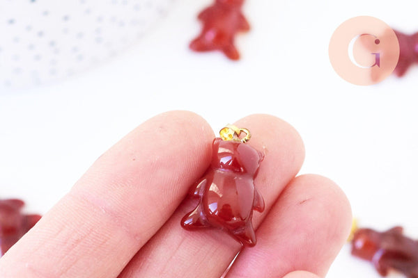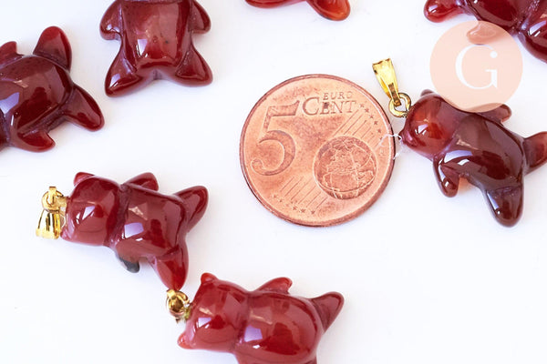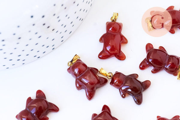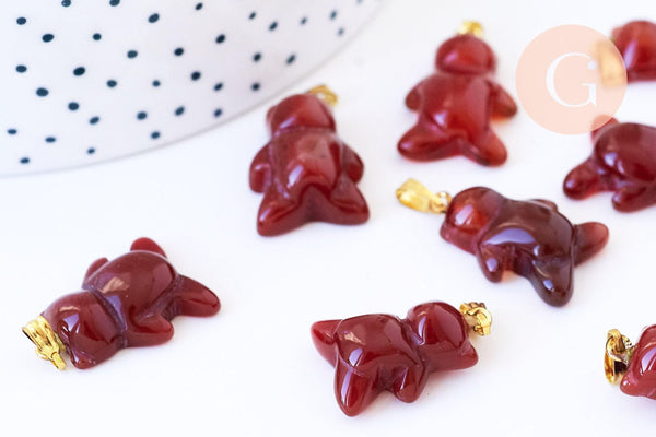 Pendentif ourson agate orange naturel support doré 24mm, création bijoux en pierre naturelle, x1 ( G5702)