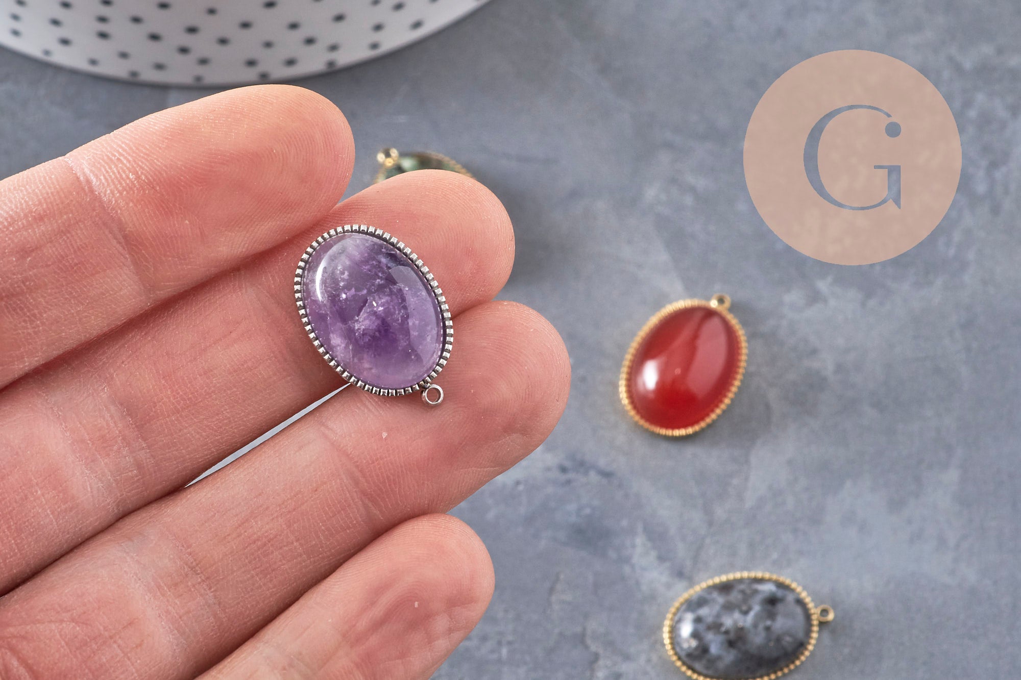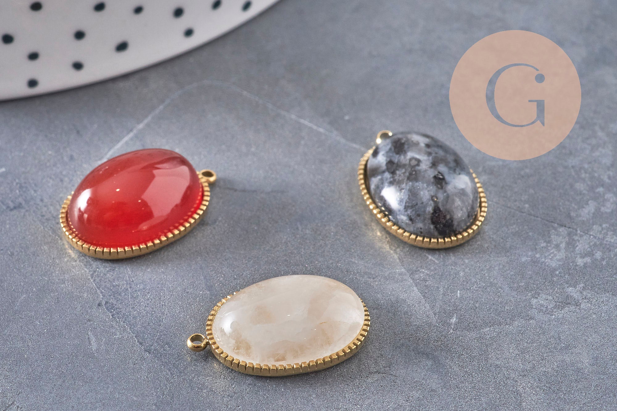 Add a touch of mysticism, natural light, and radiance to your creations with this natural stone pendant set in 14K gold-plated 304 stainless steel . Each pendant is unique and contains an authentic stone with symbolic power: amethyst (intuition), labradorite (protection), rock crystal (purity), carnelian (energy), or African jasper (balance). A durable gold finish and meticulous setting make it a precious piece, perfect for timeless jewelry.