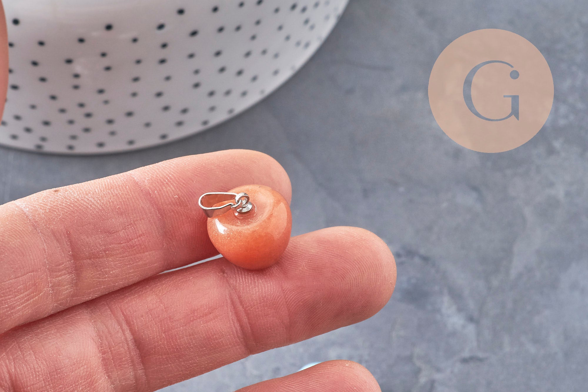 Seize the day with this apple-shaped charm . It's a genuine natural stone attached to a stainless steel bail.