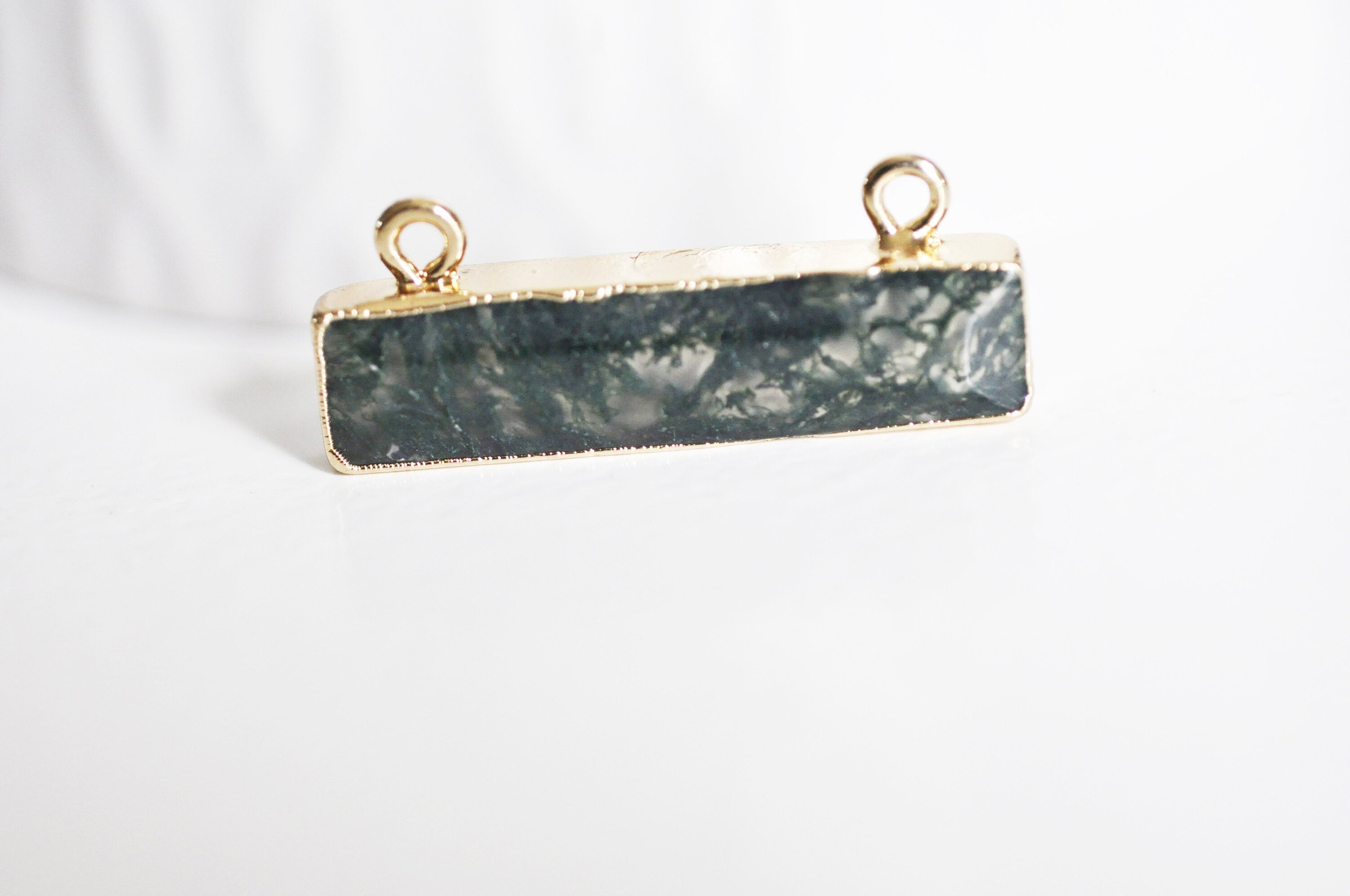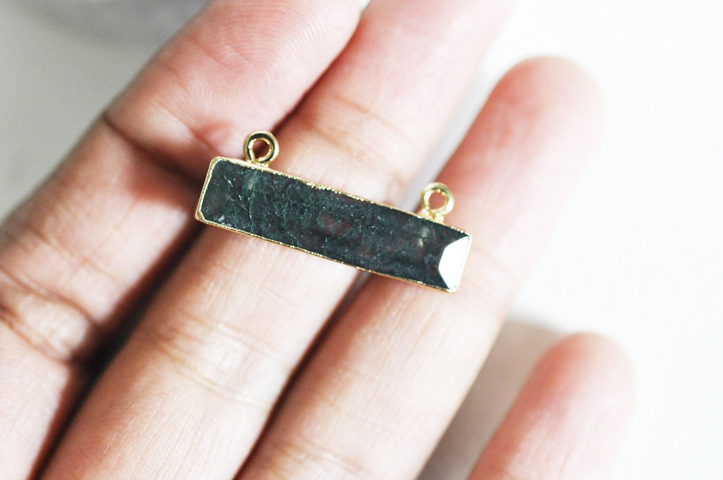Green moss agate rectangle pendant, jewelry pendant, agate pendant, stone pendant, natural agate, moss agate, 30.5mm Fall for this small green agate pendant with its golden rectangle-shaped support made up of two rings on each end of the upper part....