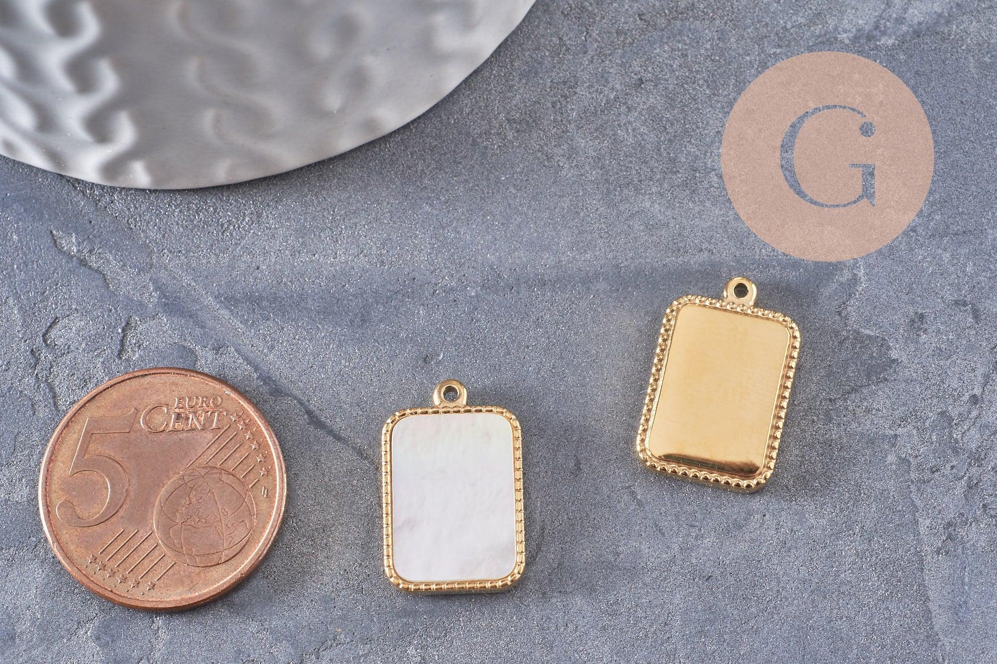 Adopt this natural mother-of-pearl rectangle pendant on a 14K gold-plated stainless steel support !