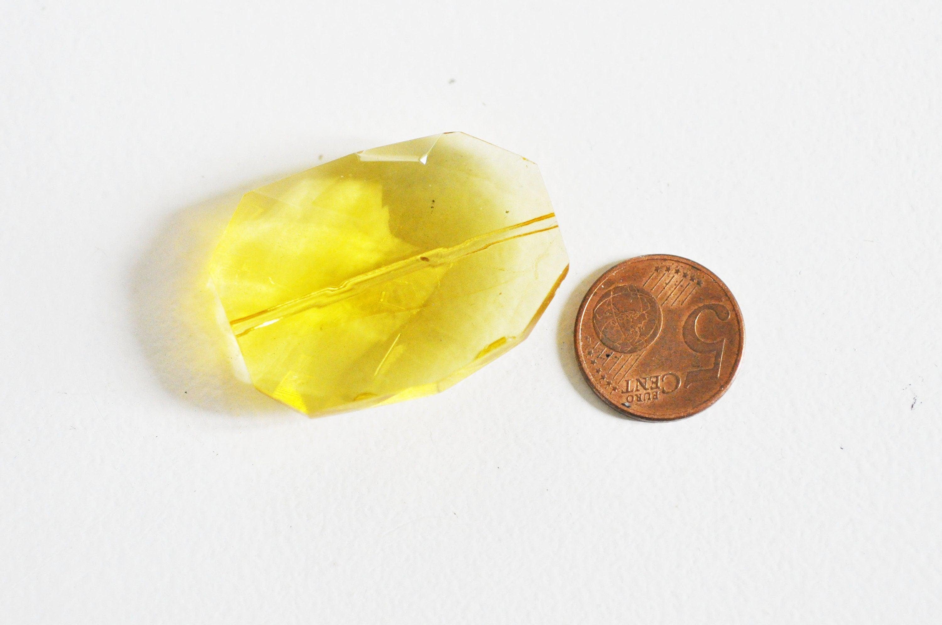 A transparent yellow faceted glass pendant, imposing and heavy, which will be perfect on a necklace. Handcrafted Dimensions: Length 42mm Width: 30mm thickness: 9-10mm Ring: 1mm A lovely pendant to use for your jewelry creations, on the theme of gri-gris....