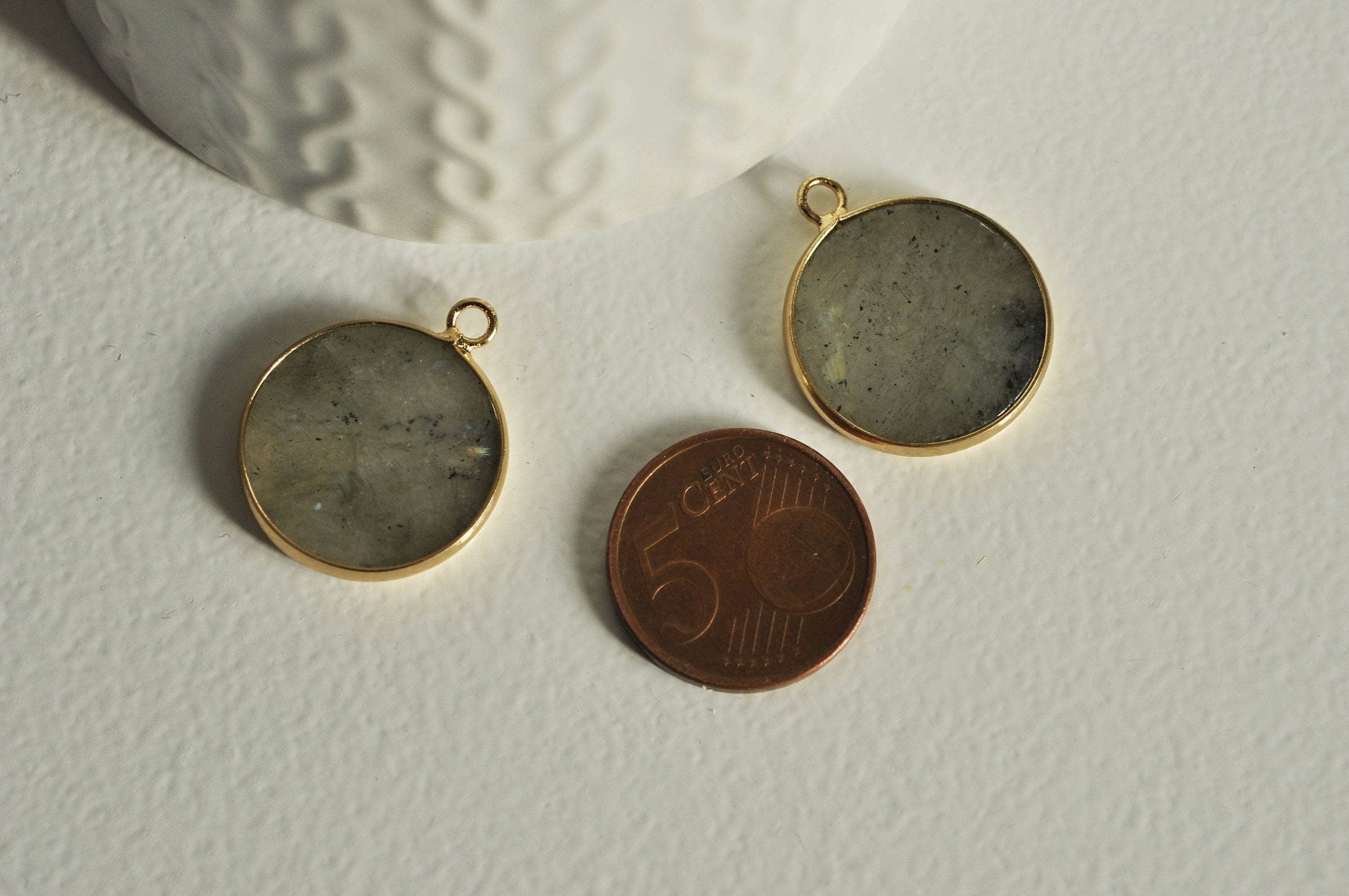 Round labradorite pendant, craft supplies, jewelry pendant, stone pendant, labradorite, natural labradorite, round pendant, 26mm Fall for this natural labradorite pendant with its golden support. You can create magnificent necklaces, earrings, collars and bracelets using this very trendy pendant. The...