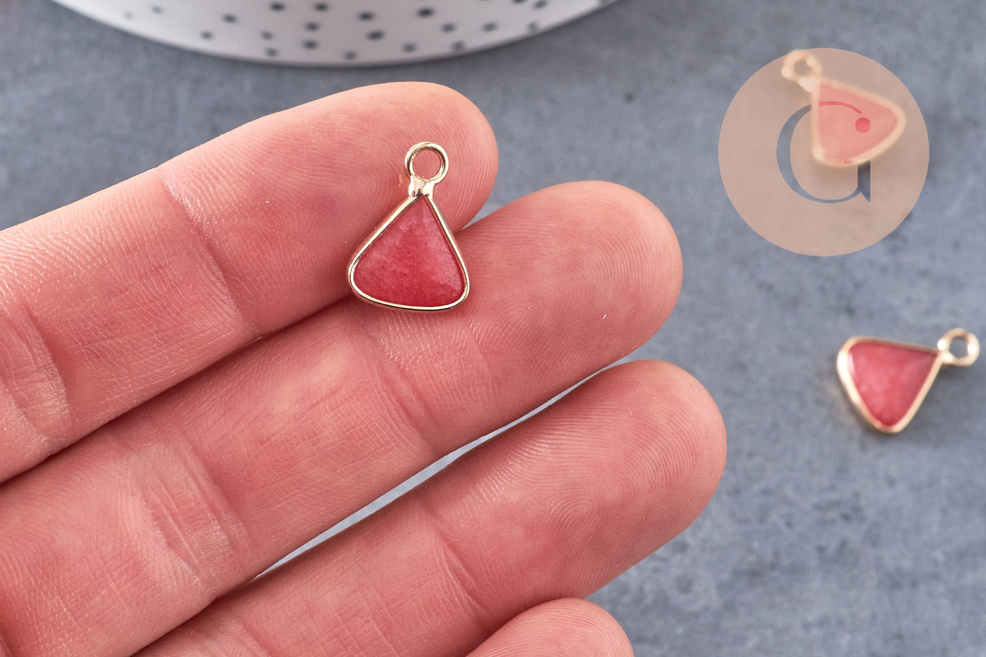 Fall for this triangle pendant in natural jade tinted red to create very trendy bohemian chic jewelry.