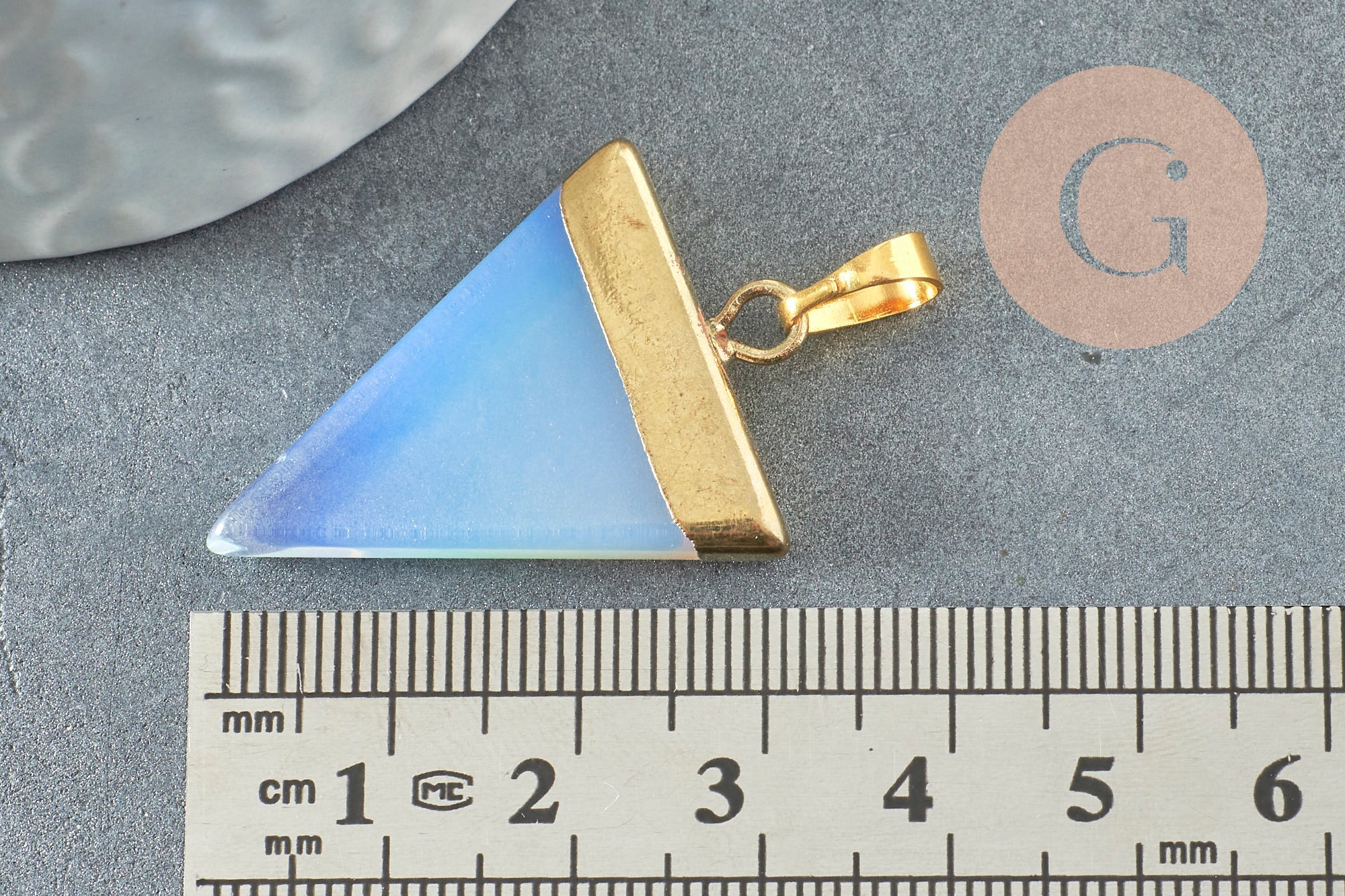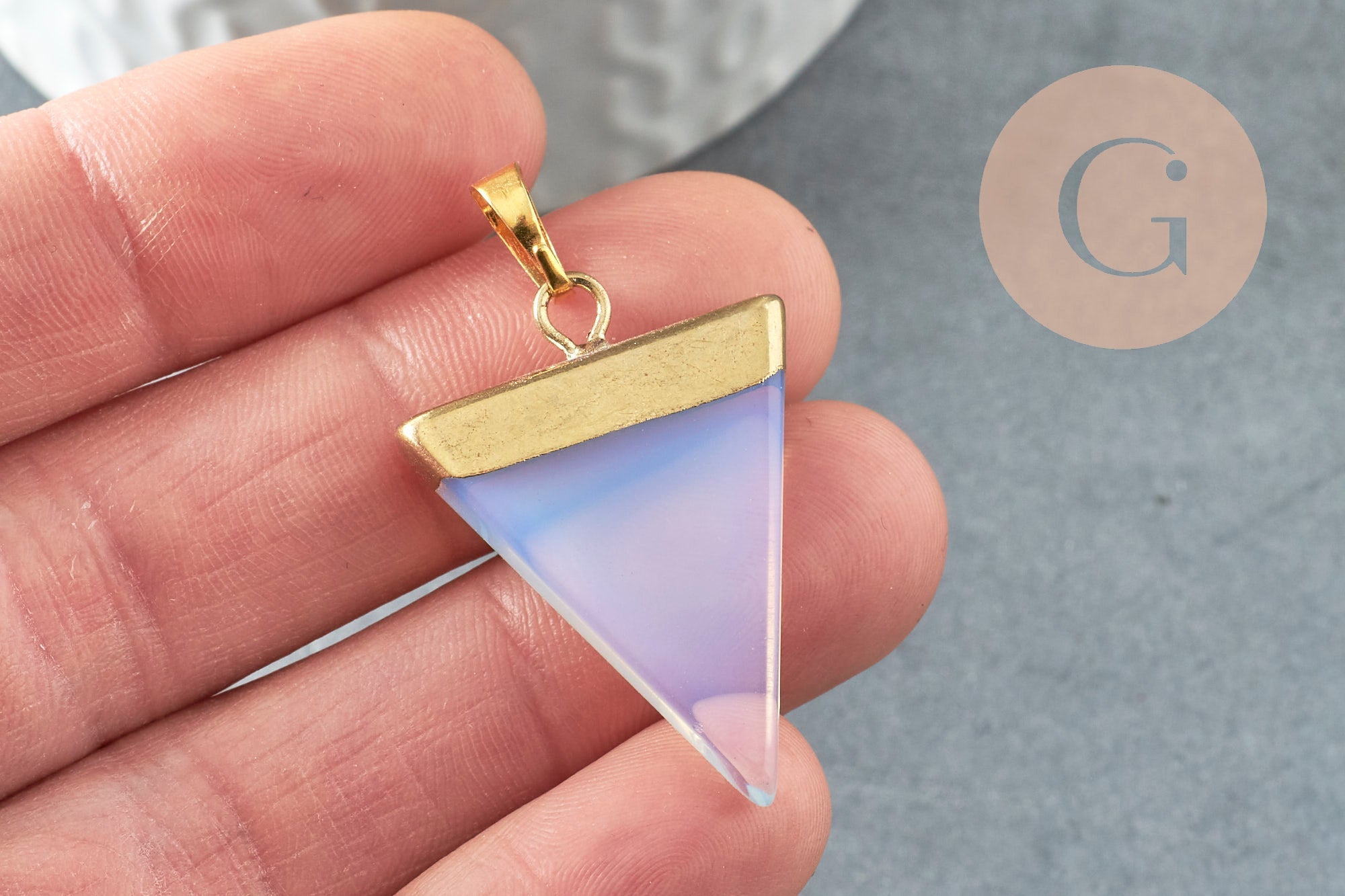 Bring light and softness to your DIY creations with this white opalite pendant, cut into a triangle and mounted on a gold-plated brass bail. Its pearly shine with subtle reflections adds a touch of mystery and delicacy to your handmade jewelry.