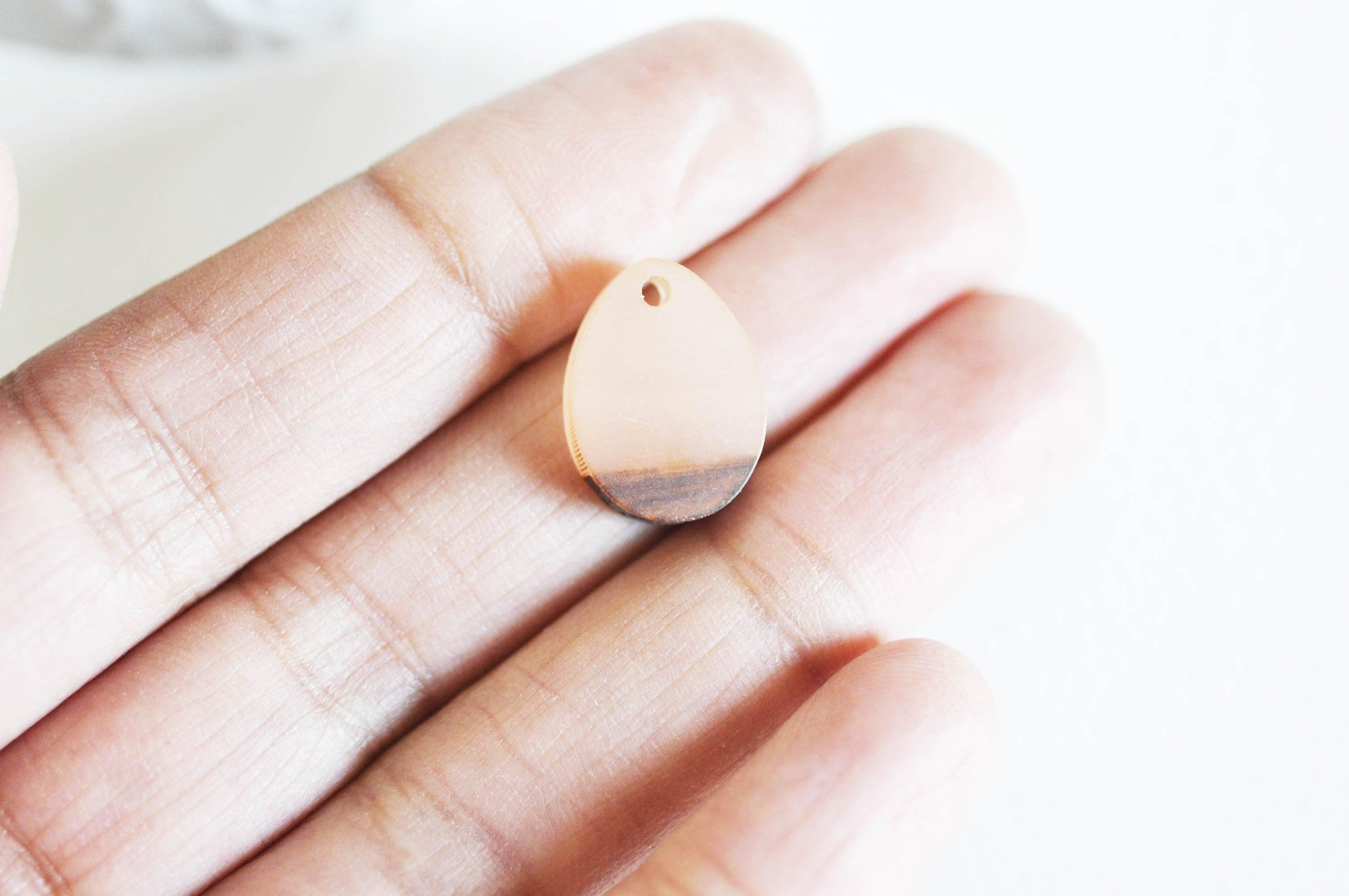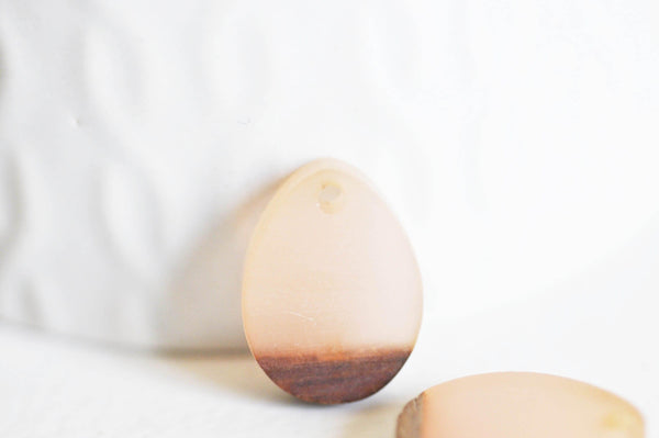 beige resin wood drop pearl 17.5mm, wooden jewelry creation x5 G2055