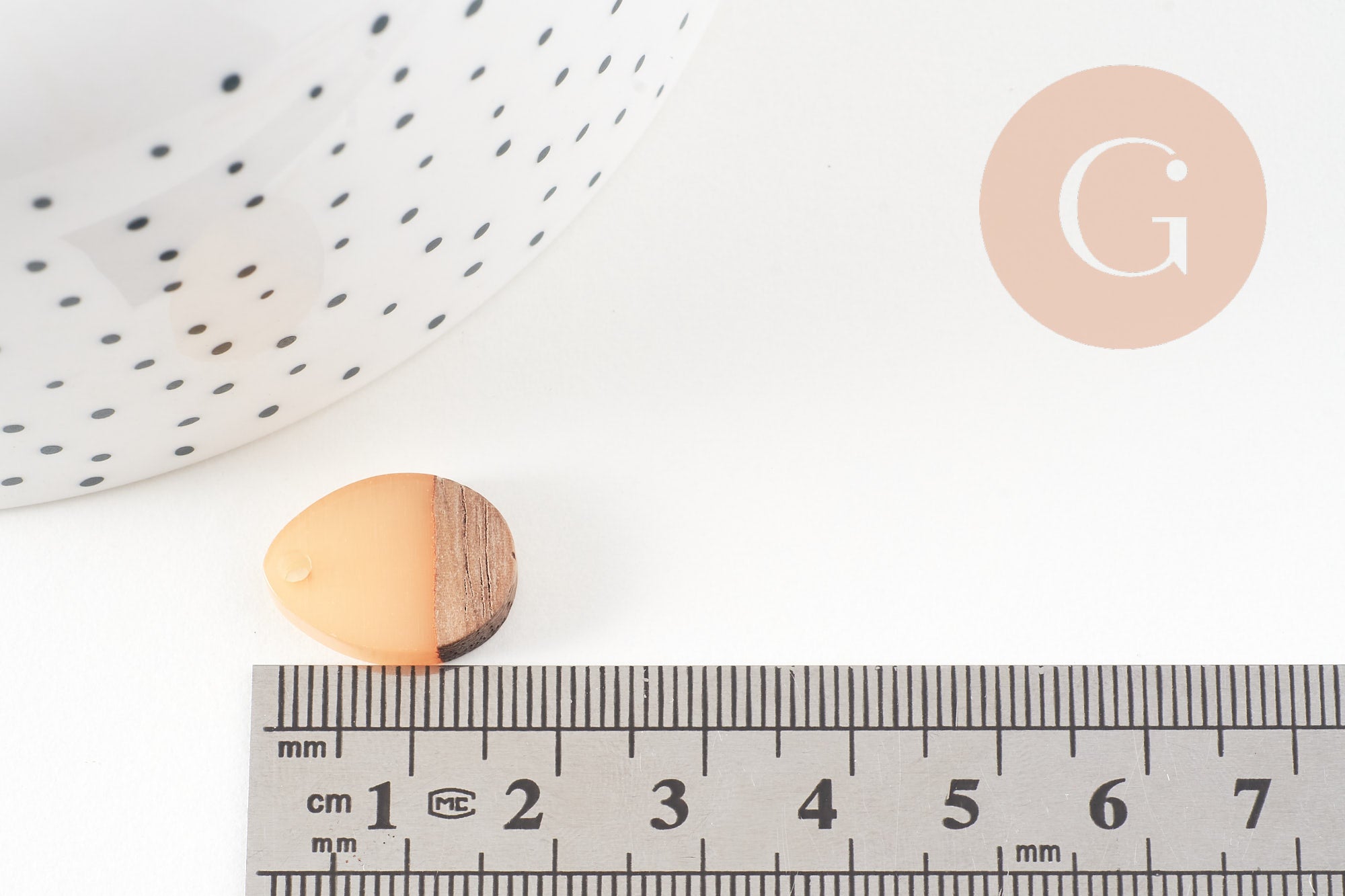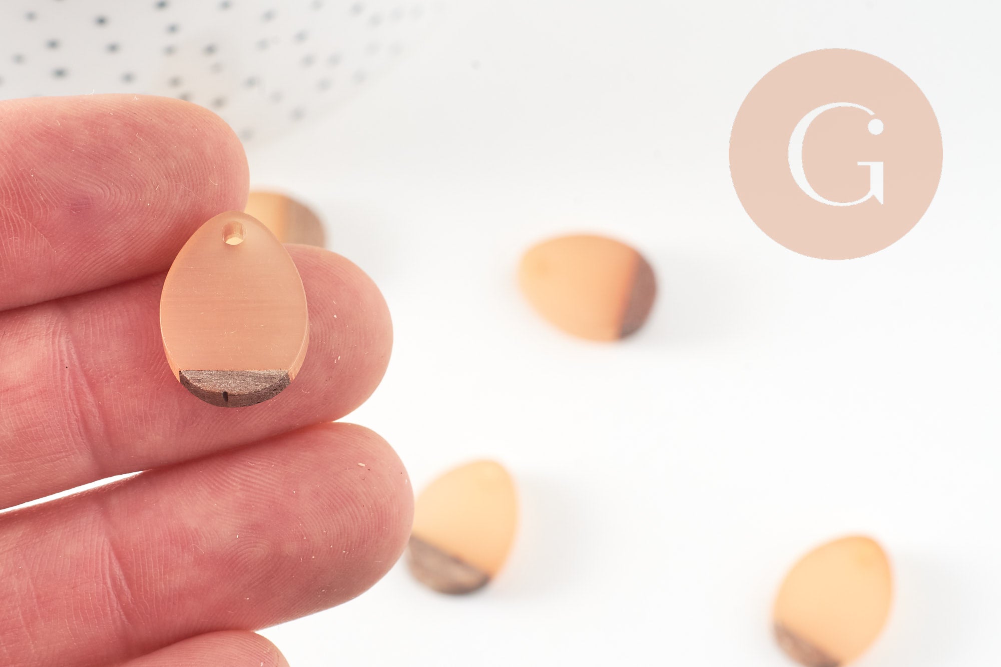 perle goutte bois résine beige 17.5mm, création bijoux bois x5 G2055