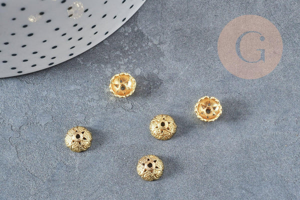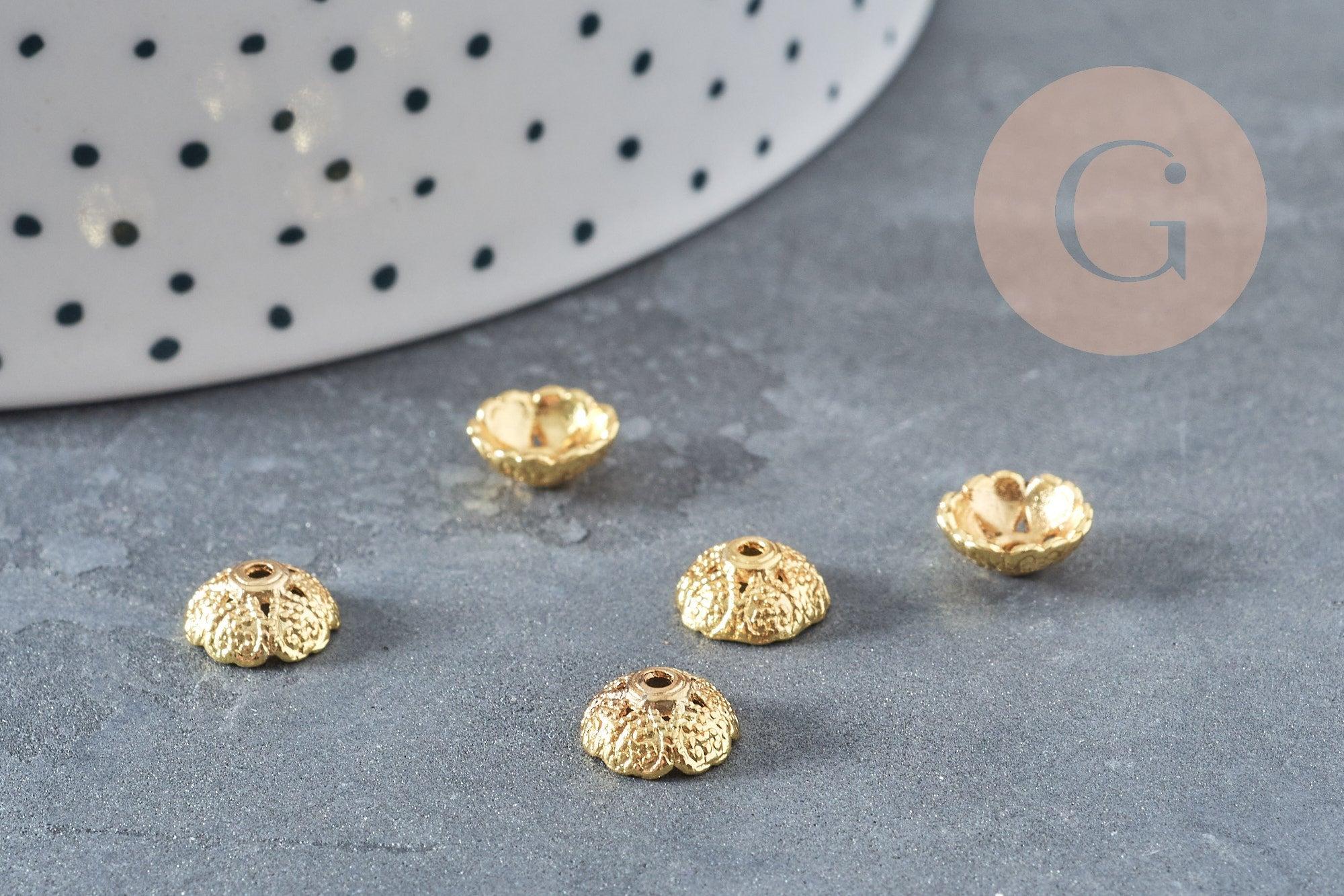 Create beautiful DIY costume jewelry using these gold zamac flower caps . Ideal for separating your stones and pearls from each other, to be placed on each side of them.