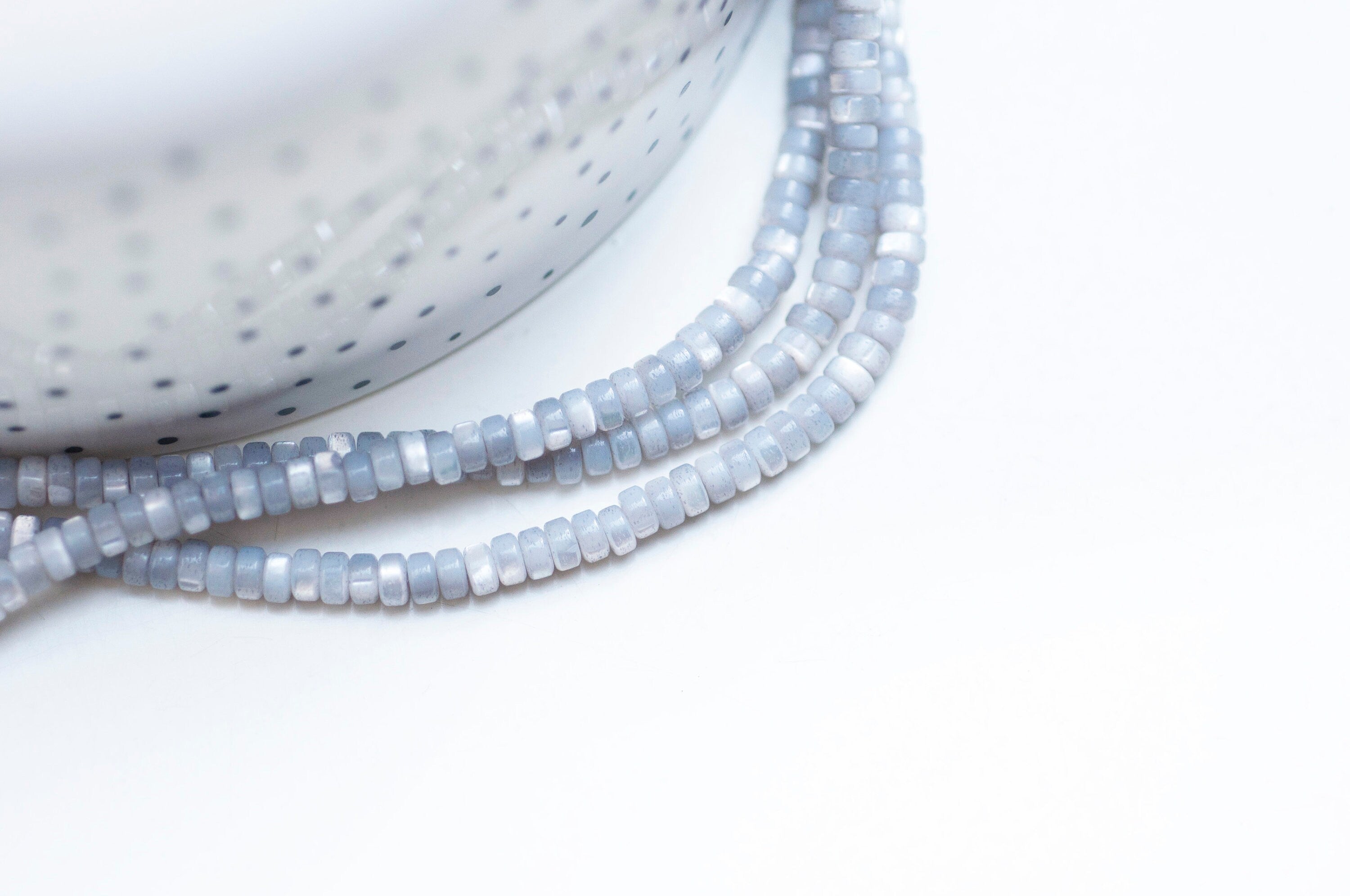 natural mother-of-pearl pearl heishi pastel gray, colored shell tube, shell pearl, jewelry creation, 2x4mm, thread of 185 pearls 1 full strand of soft grey mother-of-pearl heishi rondelle beads (approximately 38cm) A lovely product for making jewelry in the very fashionable...