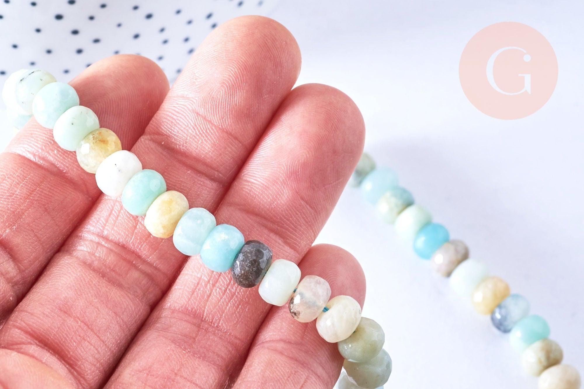 Adopt these faceted natural amazonite rondelle beads, to make natural stone jewelry,