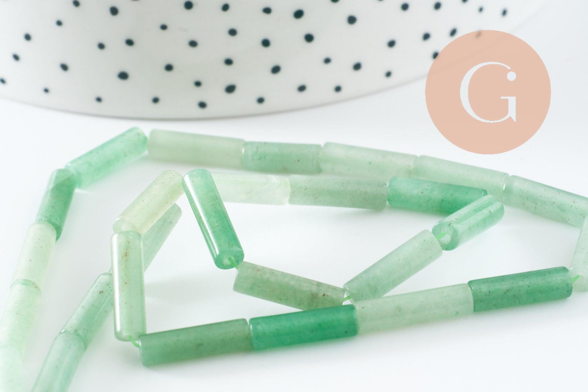 A 39.8cm strand of natural green aventurine tube beads (approximately 20 beads)