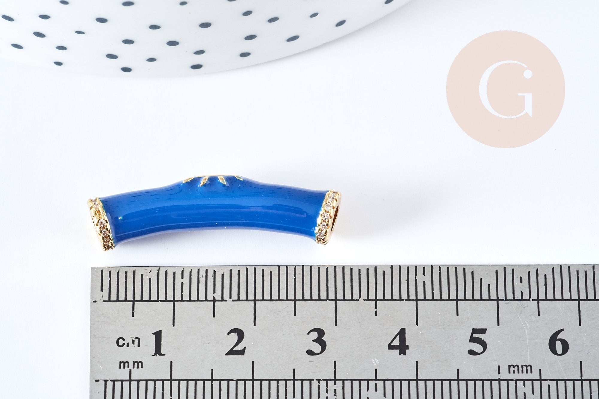 Add a touch of protection and happiness to your jewelry creations with this golden tube bead protective eye talisman in 18K gold-plated brass enameled in blue. With a size of 32mm, this golden tube bead is a true work of art that will make a splash in all your jewelry creations.