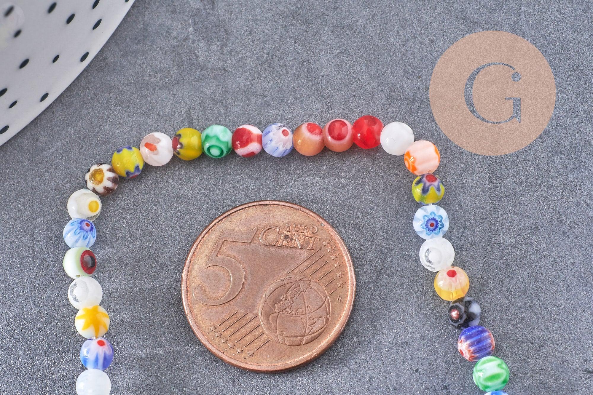 4mm round handcrafted millefiori glass beads for colorful and unique jewelry creations! Each bead is handcrafted, offering a vibrant mix of colors to brighten up your DIY bracelets, necklaces, or earrings.